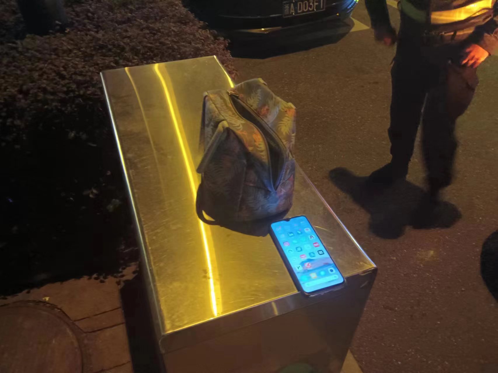 當日19:30,公司員工顏晨龍、康皓遠和邵海坤在五常街道豐嶺路巡邏時(shí),撿到一個(gè)手提包,內有一部手機。