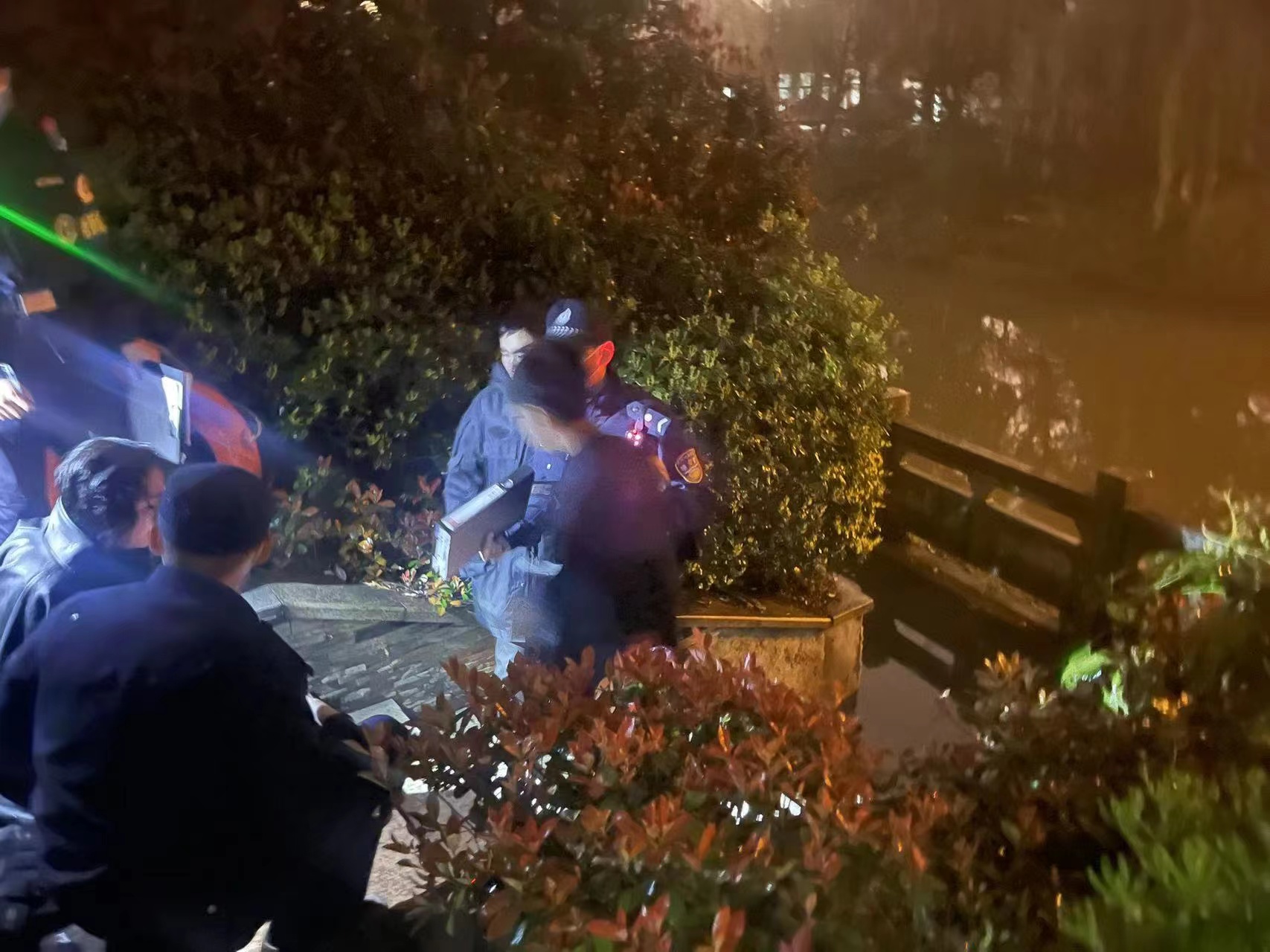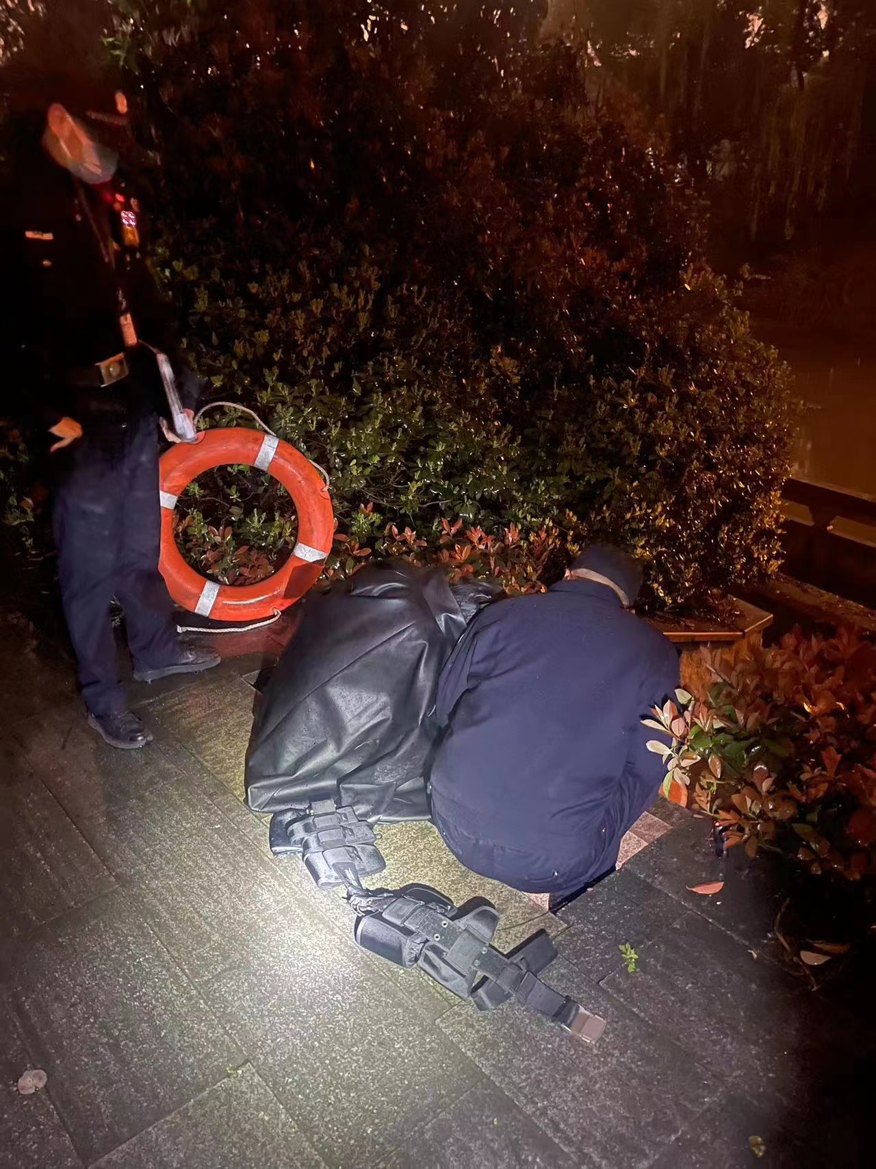 當日00:52,公司員工侯世豪和新城派出所輔警劉軍巡邏時(shí)接到派出所值班室指令,稱(chēng)吳家門(mén)1號附近有女子跳河輕生,請立即前往救助。兩人快速趕到現場(chǎng),在熱心市民的指引下來(lái)到河邊,此時(shí)的女子大半個(gè)身體浸在水中,兩只手扒在河邊的雜草上,顯然快要體力不支了。