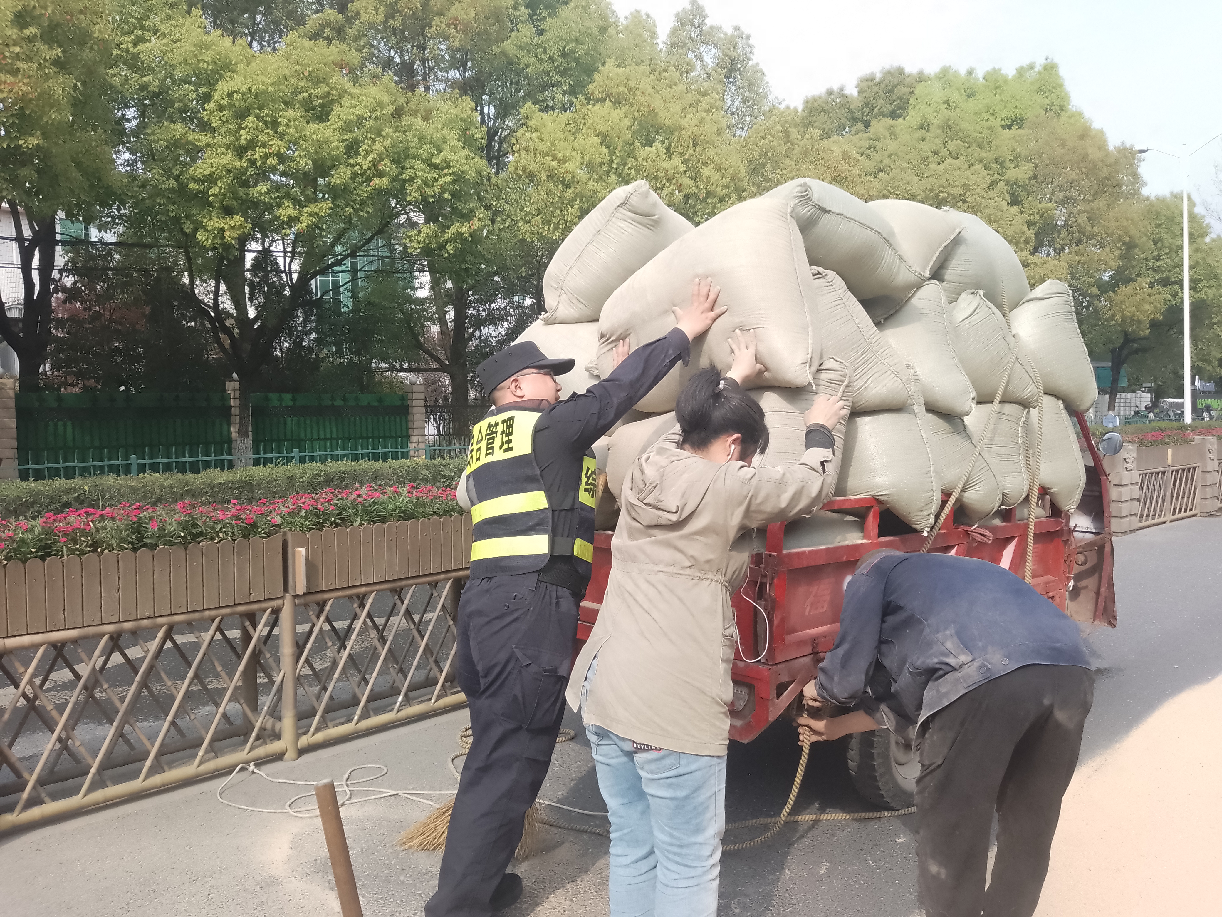 3月28日,浙江民泰公司駐杭州市余杭區良渚地鐵項目員工幫忙清理路面灑落木屑,消除安全隱患。