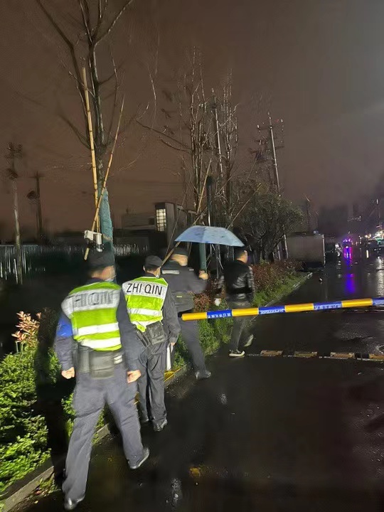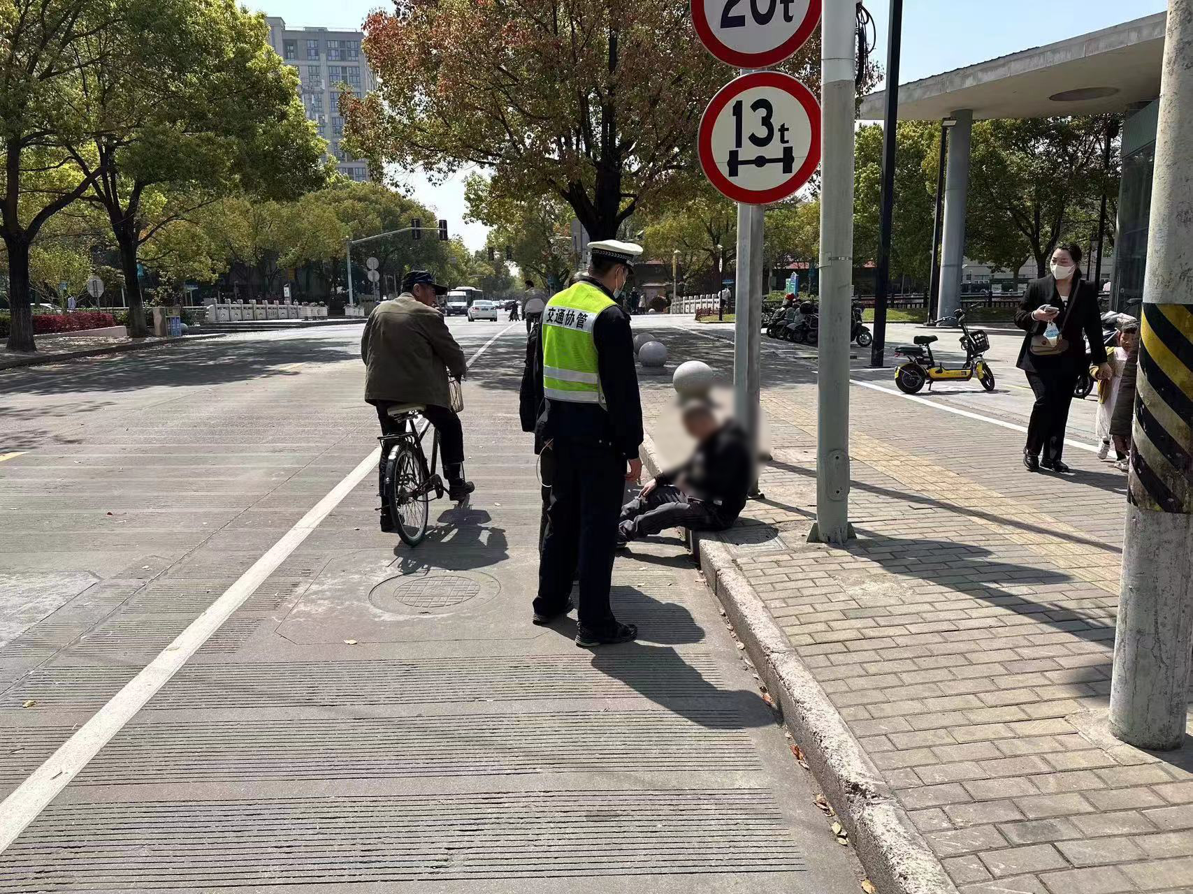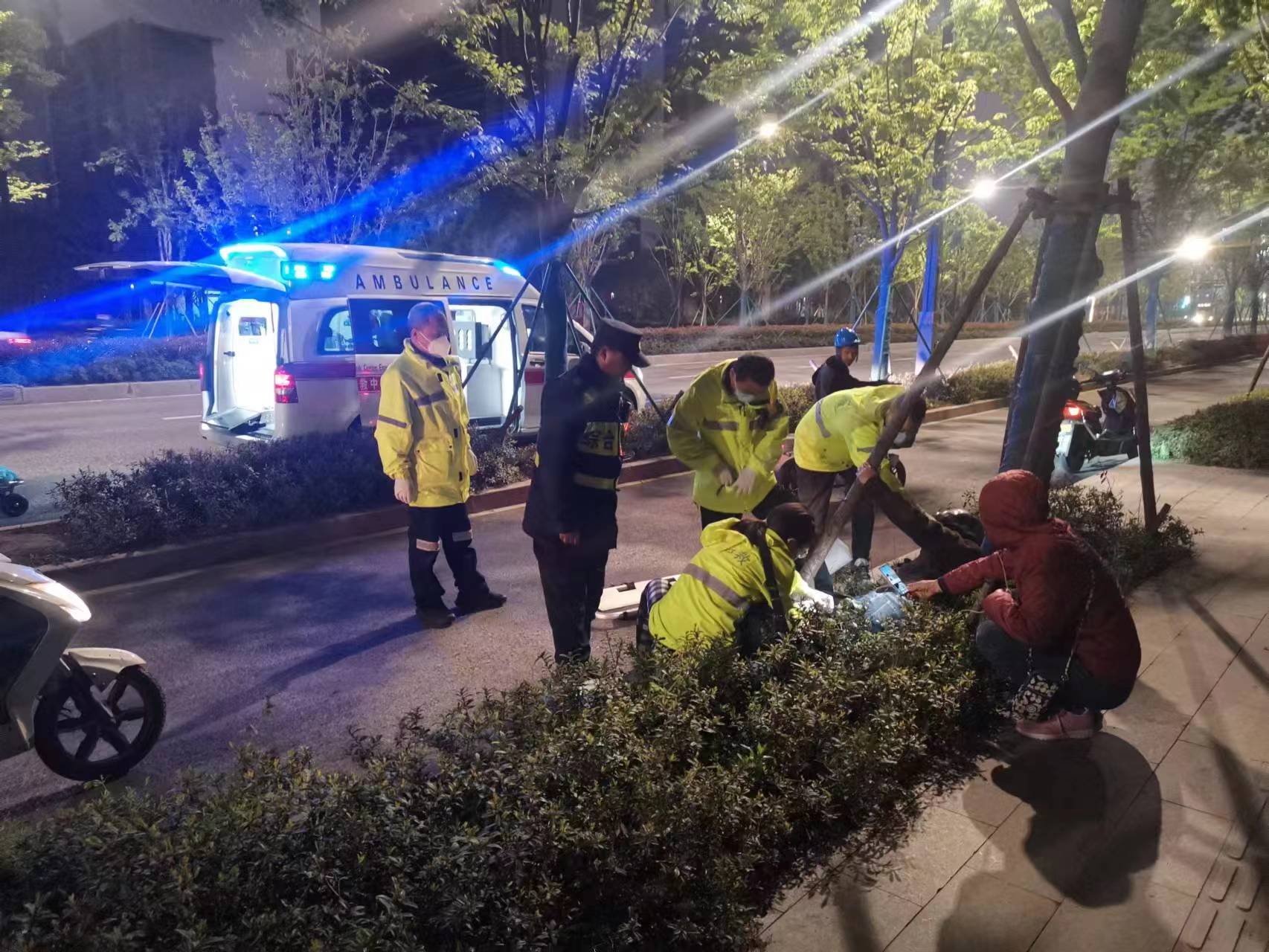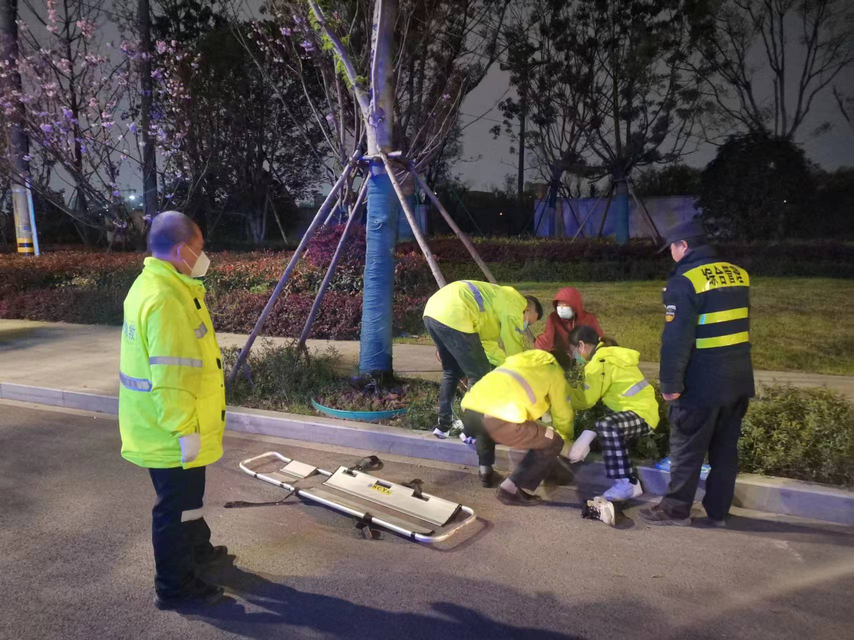 當天20:28,公司員工王保剛和黃文在杭行路與金源路交叉口巡邏時(shí),發(fā)現一男子斜靠在綠化帶的樹(shù)下,不遠處有一輛電瓶車(chē)橫躺在路上。