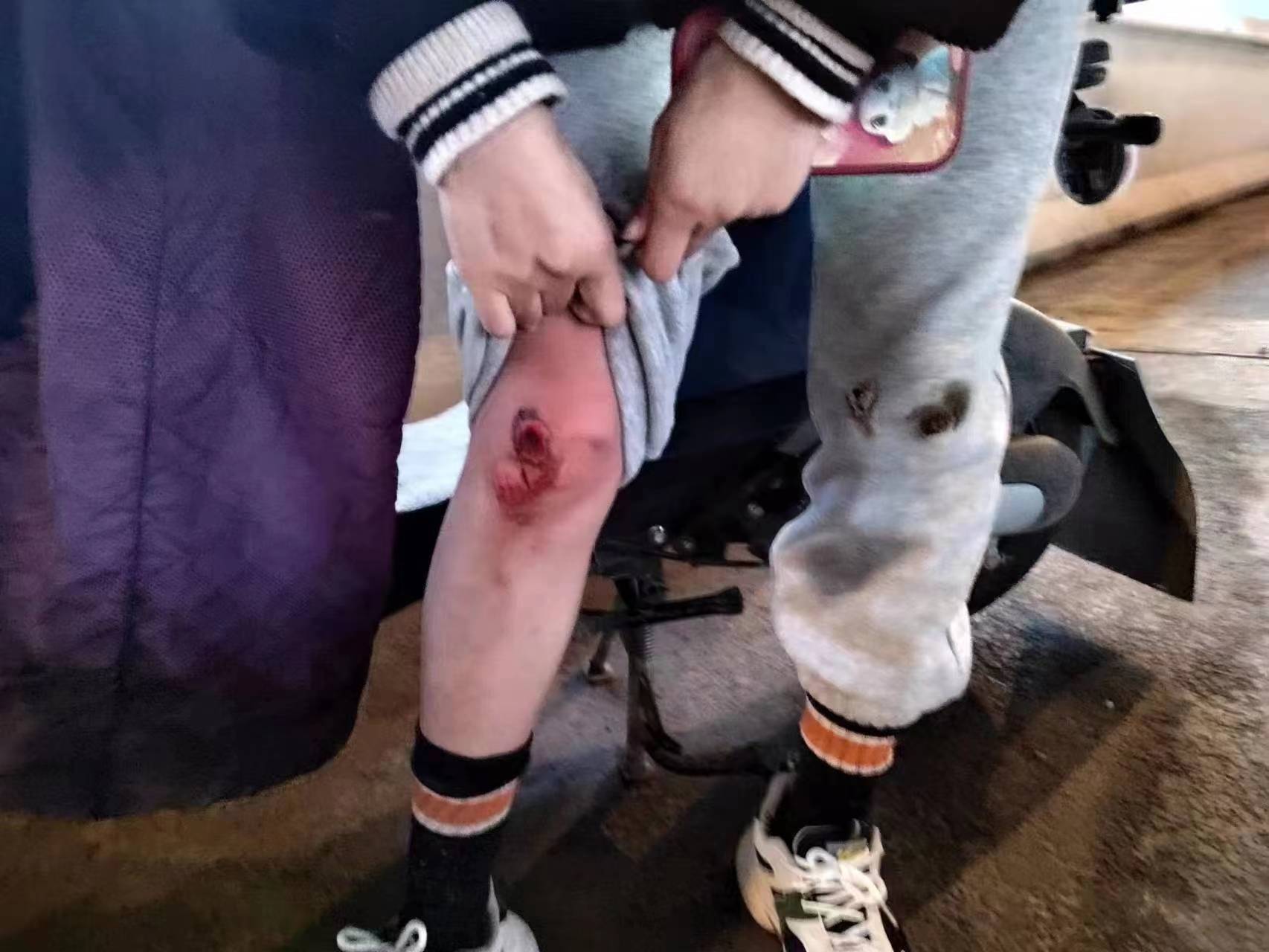 原來(lái)女子騎車(chē)時(shí)被高架橋上方掉落的水泥渣砸中,導致電動(dòng)車(chē)失衡摔倒在地。女子說(shuō)自己膝蓋受傷了很痛,站不起來(lái),要叫救護車(chē)到醫院看看。