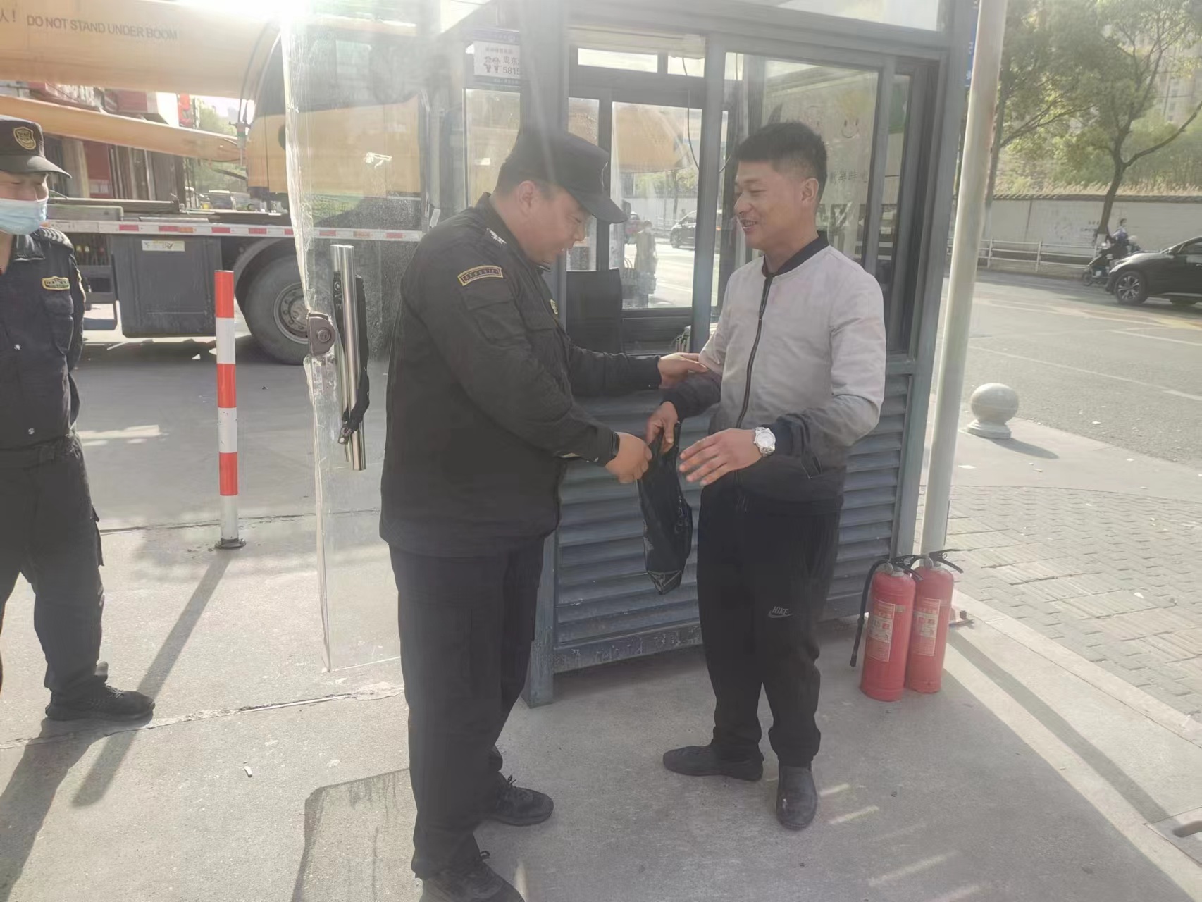 4月13日,宗保公司駐浦東周浦區域海印·哈鄰里項目員工撿到黑色手提袋交還失主,受到感謝。