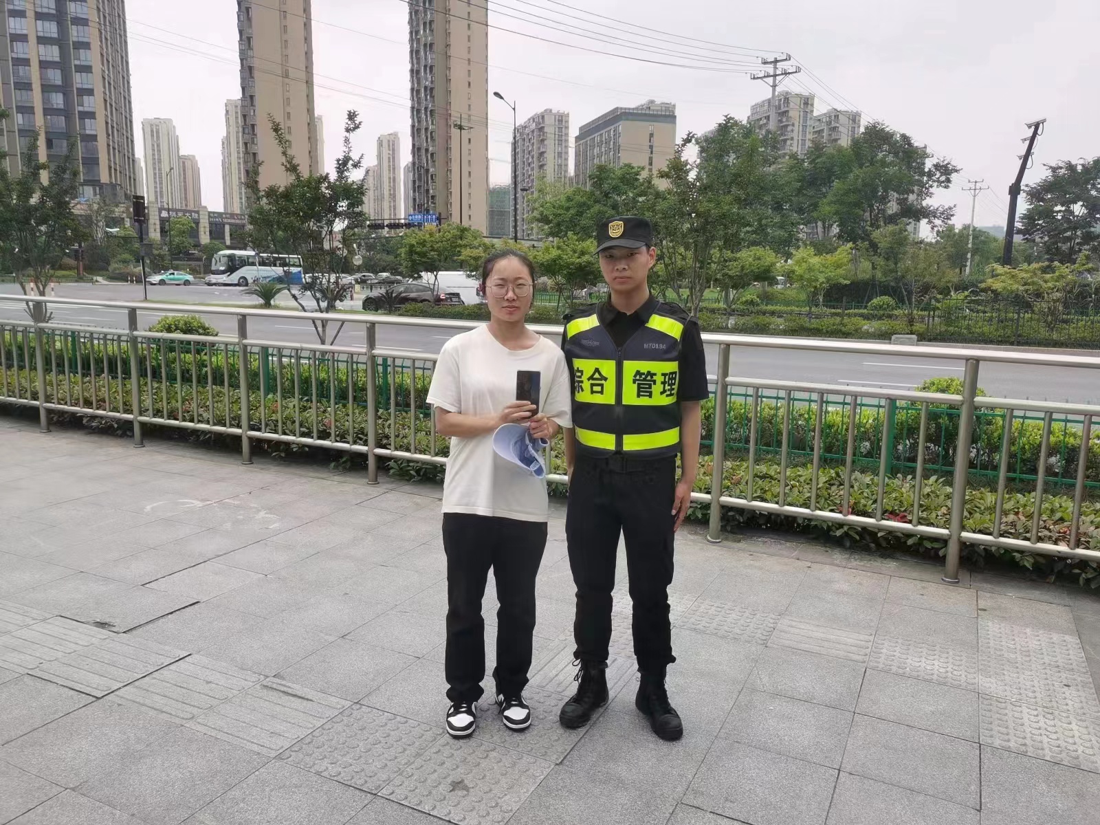 很快,一位身穿白色T恤的女子急匆匆地趕到約定地點(diǎn)。在核實(shí)證明手機是該女子所丟失后,彭帥超將手機交還給了她。該女子對民泰公司員工彭帥超拾金不為的行為連連感謝贊揚。