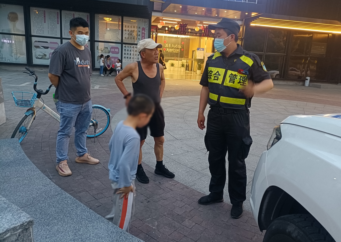 當天20:50,公司員工劉偉、和一楓和鄭統在良渚街道玉琮路巡邏時(shí),看到一個(gè)小男孩一邊走一邊不停地轉頭張望,身邊沒(méi)有大人陪同,好像很無(wú)奈無(wú)助的樣子。