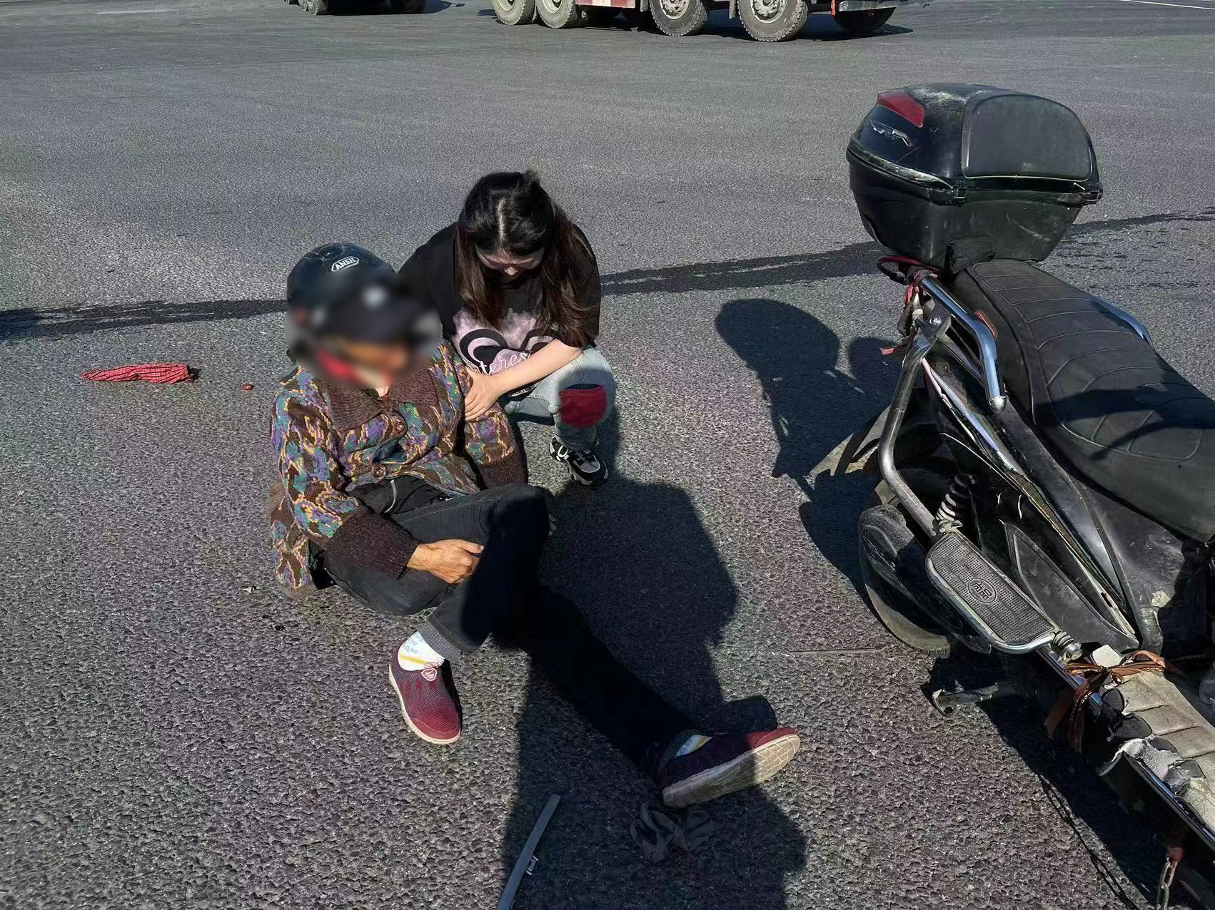 幾人見(jiàn)狀急忙跑過(guò)去察看,據老人講一輛小轎車(chē)右轉彎時(shí)把他們連人帶電瓶車(chē)撞倒,老奶奶左眼眶和臉部擦傷,小腿骨折無(wú)法動(dòng)彈,而轎車(chē)駕駛員竟駕車(chē)而去。