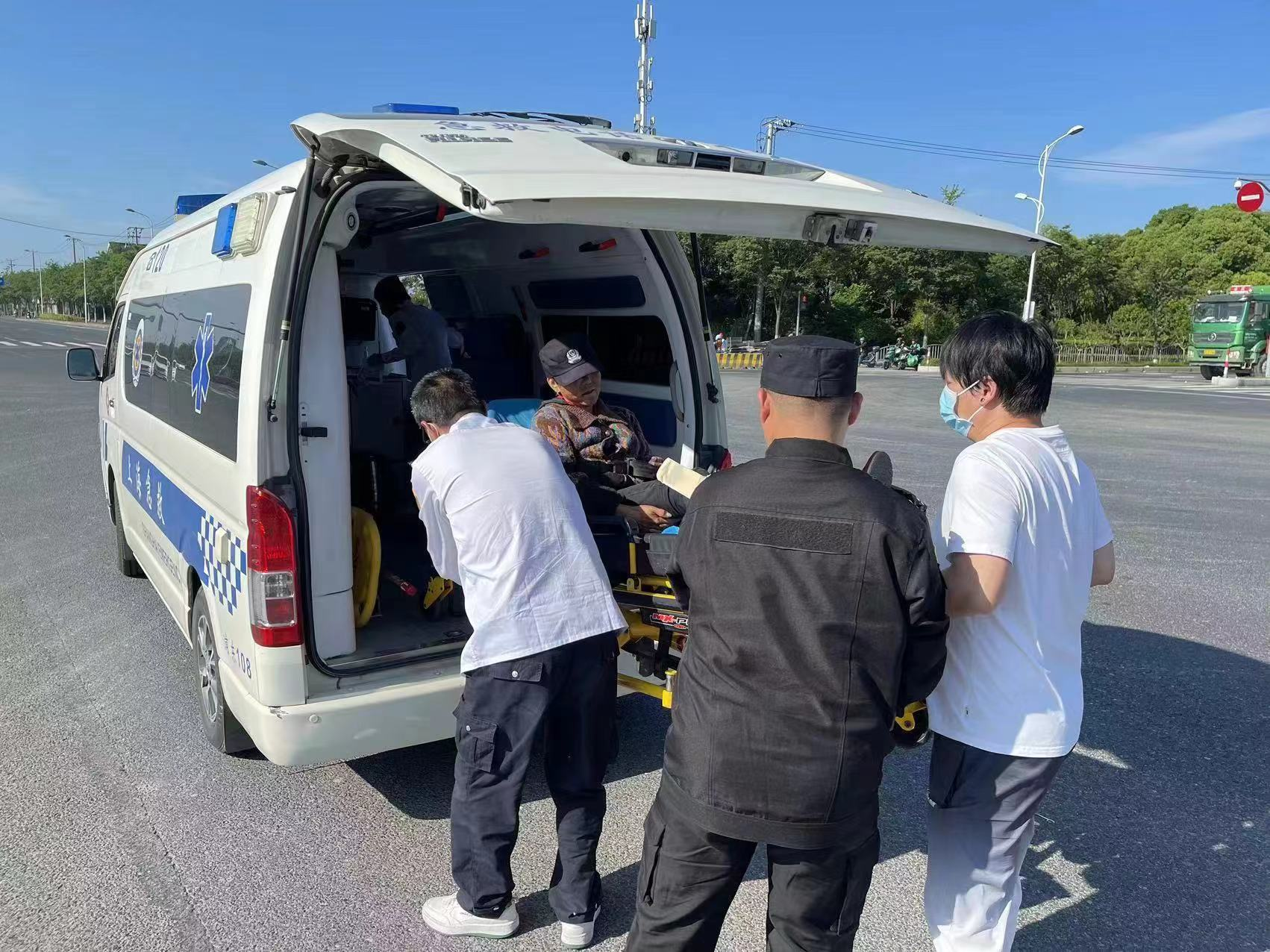 因太陽(yáng)照射厲害,細心的周樂(lè )邦從巡邏車(chē)上找來(lái)一把遮陽(yáng)傘,蹲著(zhù)為老人撐起一片“陰涼”。120急救車(chē)趕到后,周樂(lè )邦才站起來(lái)又協(xié)助醫護人員將老人抬上車(chē)。同時(shí),根據老人提供的信息,又聯(lián)系到老人的家屬告知了相關(guān)情況。