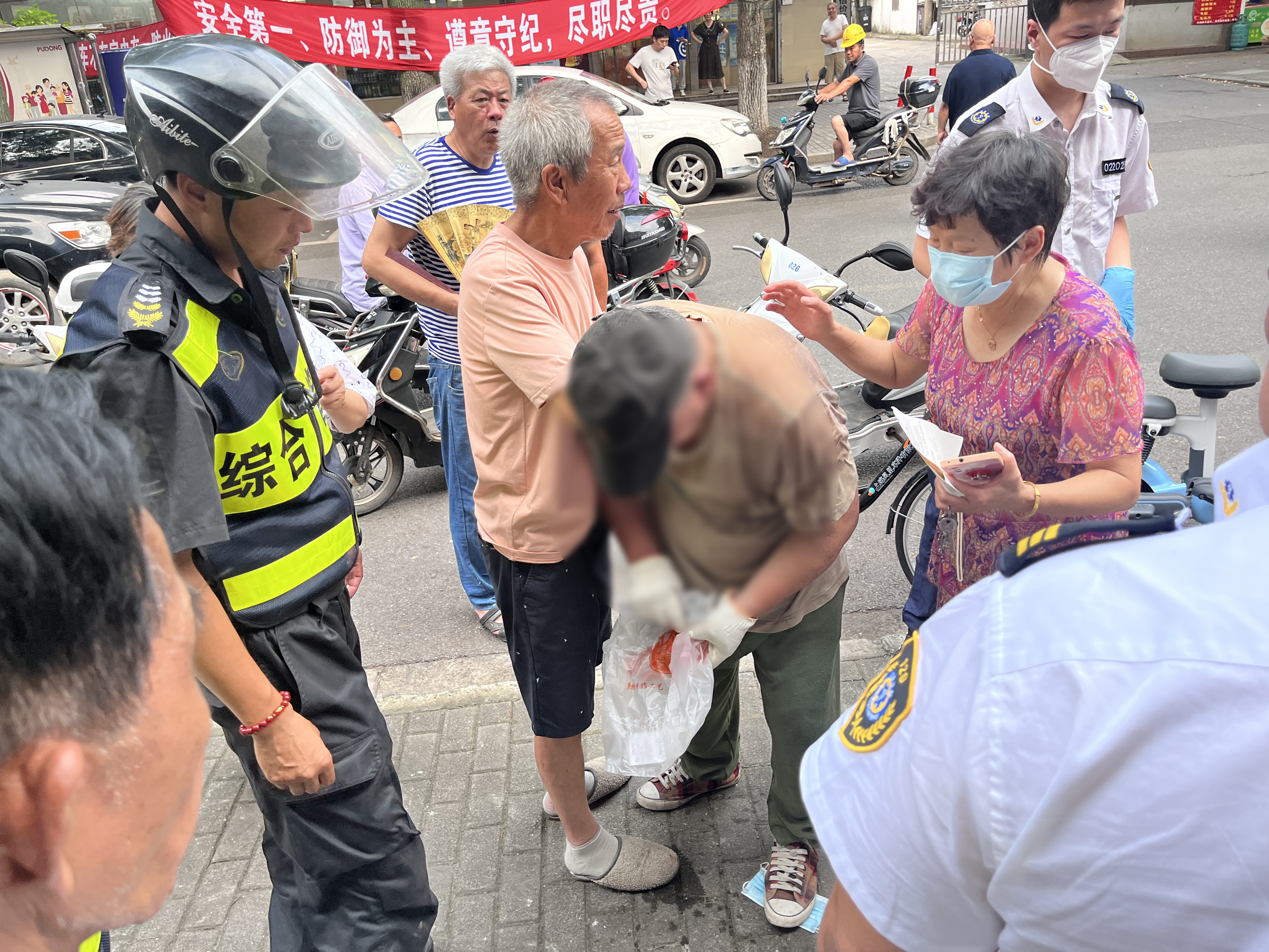 7月4日,宗保公司駐浦東新區大團項目員工熱心幫助中暑倒地老人。