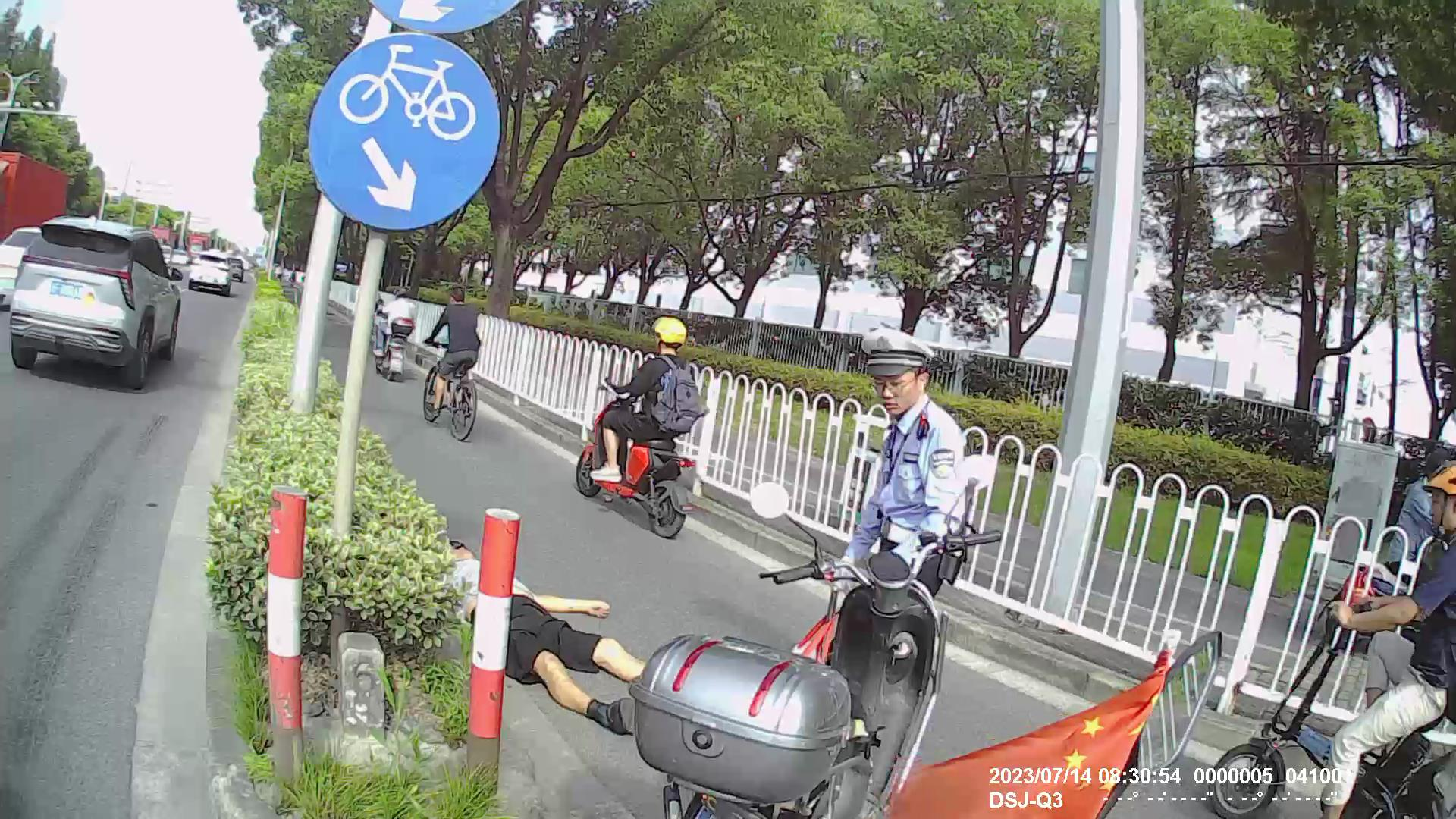 7月14日,宗保公司駐閔行區莘莊工業(yè)區項目員工熱心幫助騎車(chē)摔倒老人。