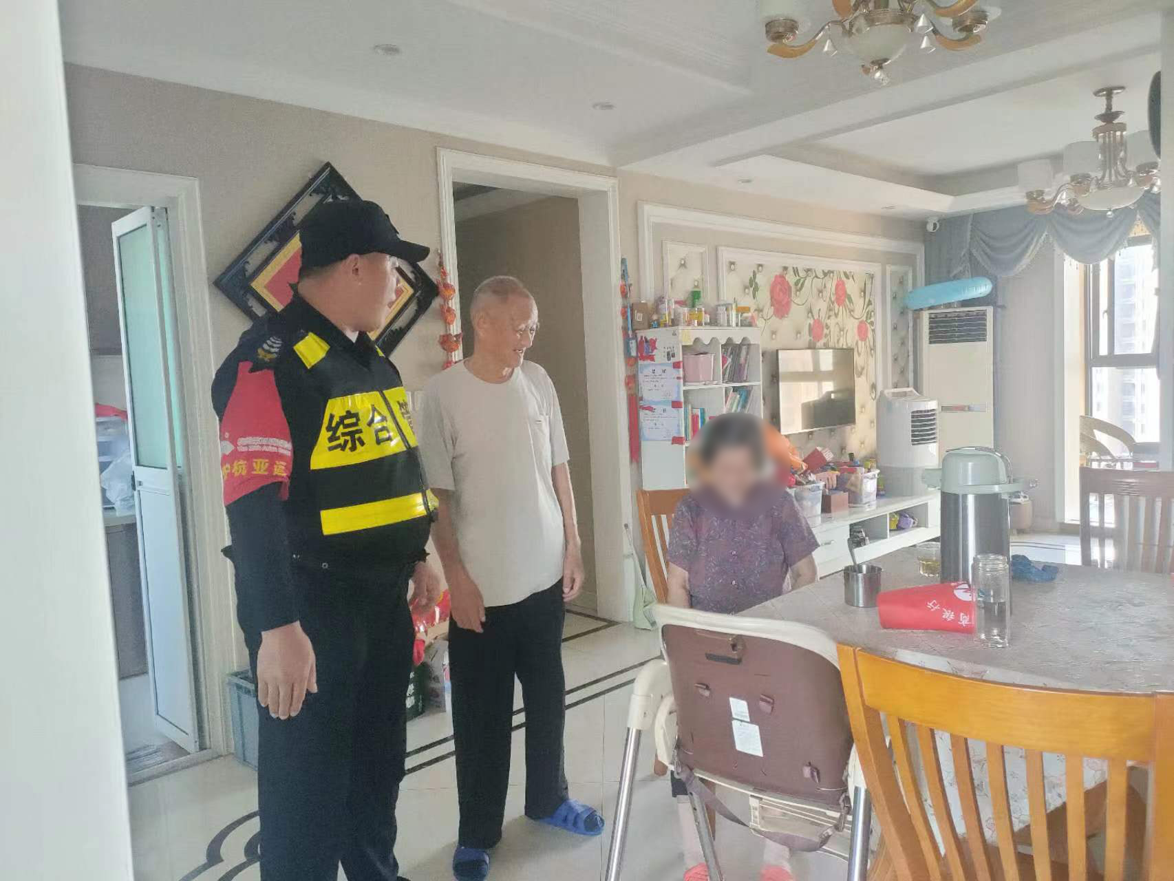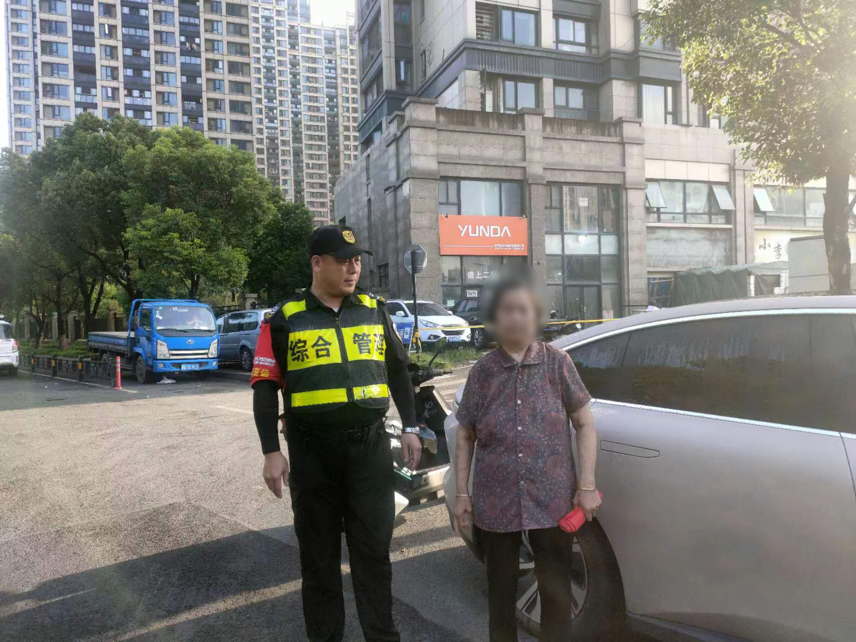 7月18日,浙江民泰公司駐杭州市余杭區良渚物流項目員工幫助迷路老人回家。
