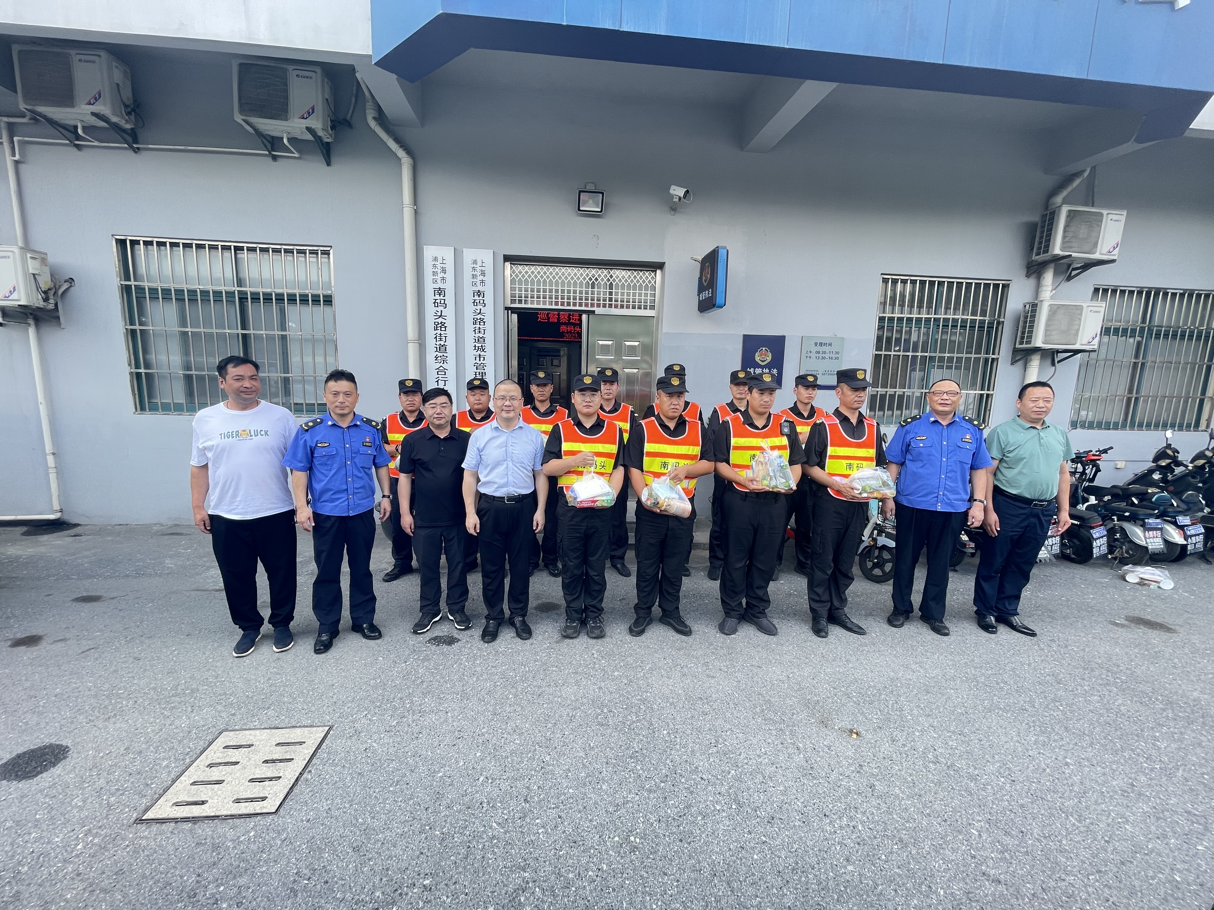 8月7日,浦東新區南碼頭路街道黨工委委員、辦事處副主任潘丹一行為堅守崗位的宗保員工送上防暑降溫慰問(wèn)品,慰問(wèn)高溫下奮戰在一線(xiàn)的宗保公司員工。