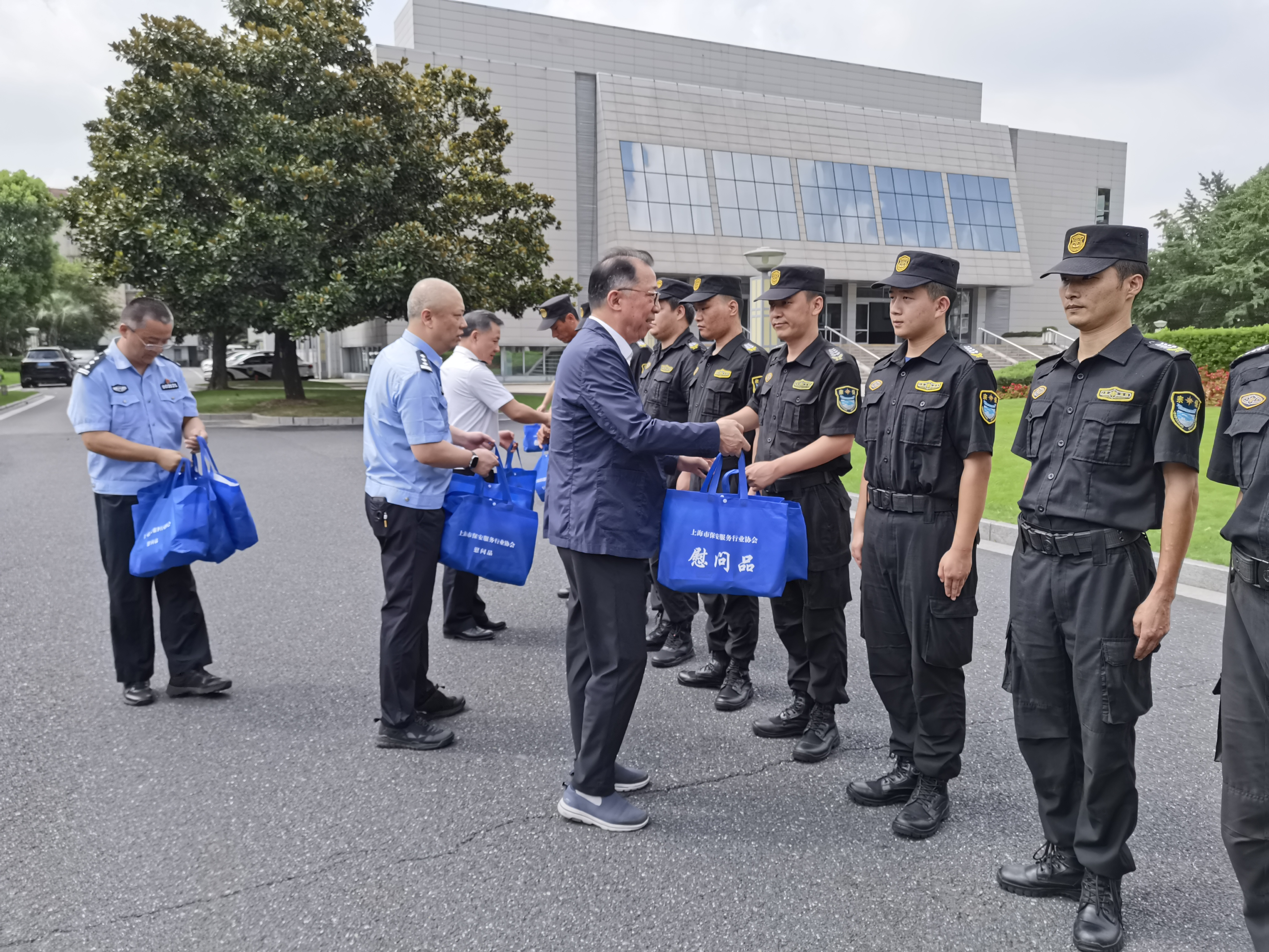 8月8日上午,上海市公安局治安總隊、市保安服務(wù)行業(yè)協(xié)會(huì )相關(guān)領(lǐng)導來(lái)到宗保公司駐市委黨校項目看望慰問(wèn)一線(xiàn)宗保員工,市委黨校副校長(cháng)謝根華、公司董事長(cháng)王耀陪同慰問(wèn)。