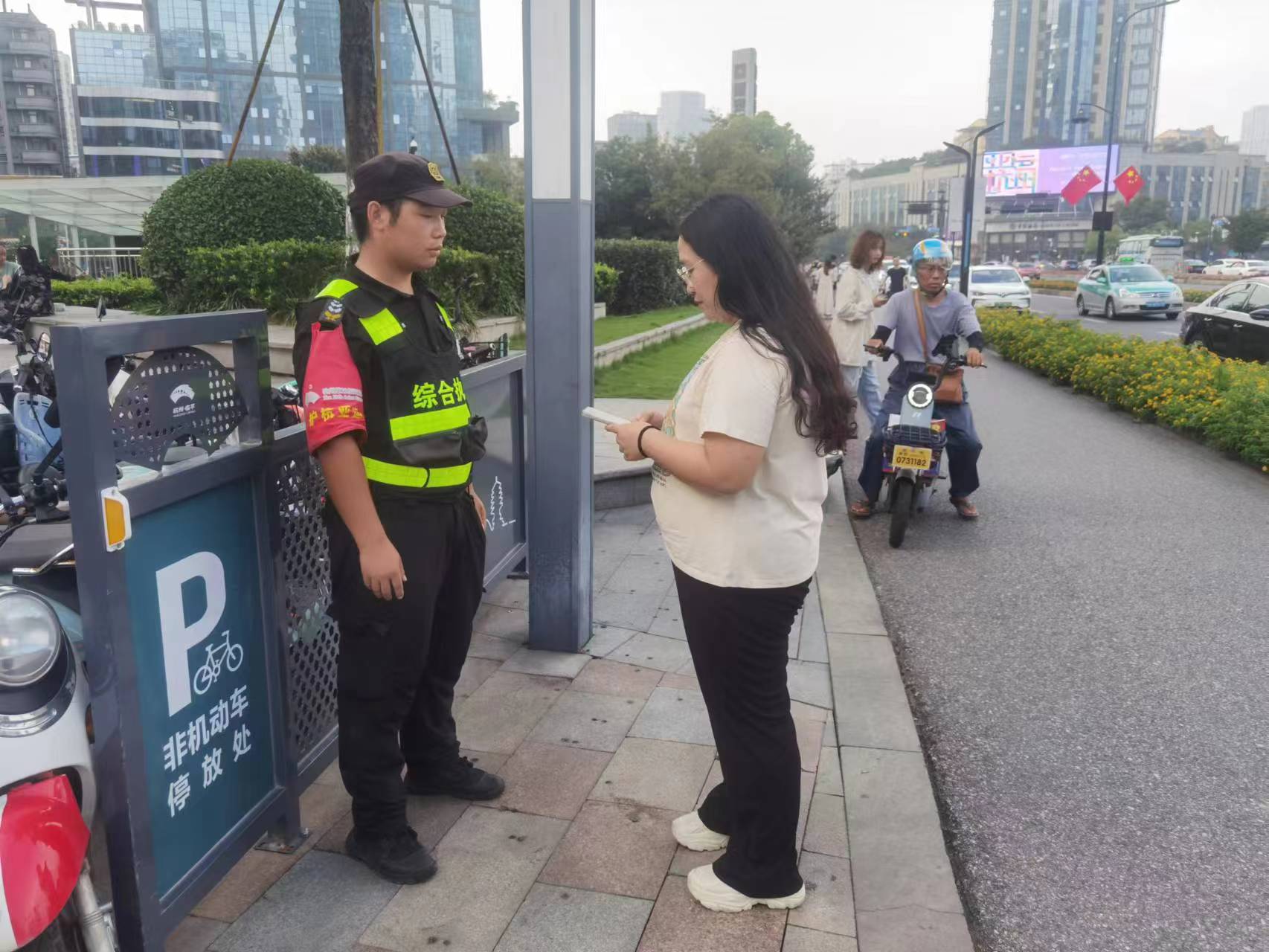 9月24日16:00,浙江民泰駐杭州市臨平區南苑市容項目員工許慶祥在南苑街道銀泰城D口整理共享單車(chē)時(shí),撿到一部蘋(píng)果iPhone14手機,隨即將情況報告了當班組長(cháng),并按指示留在原地等待。大概過(guò)了一個(gè)小時(shí),一女子趕到現場(chǎng)尋找手機。許慶祥核實(shí)確認其是失主后,將手機交還給了她。女子拿到手機,對民泰員工撿到昂貴手機等待交還、拾金不昧的行為再三表示感謝和稱(chēng)贊。