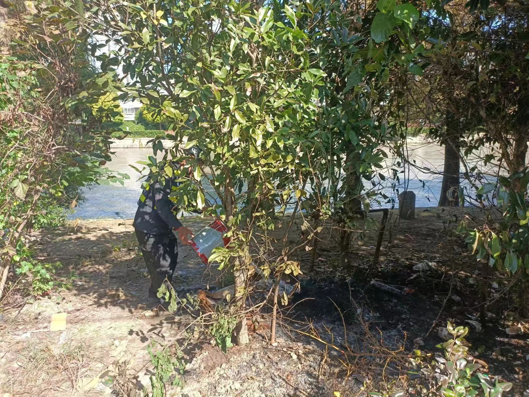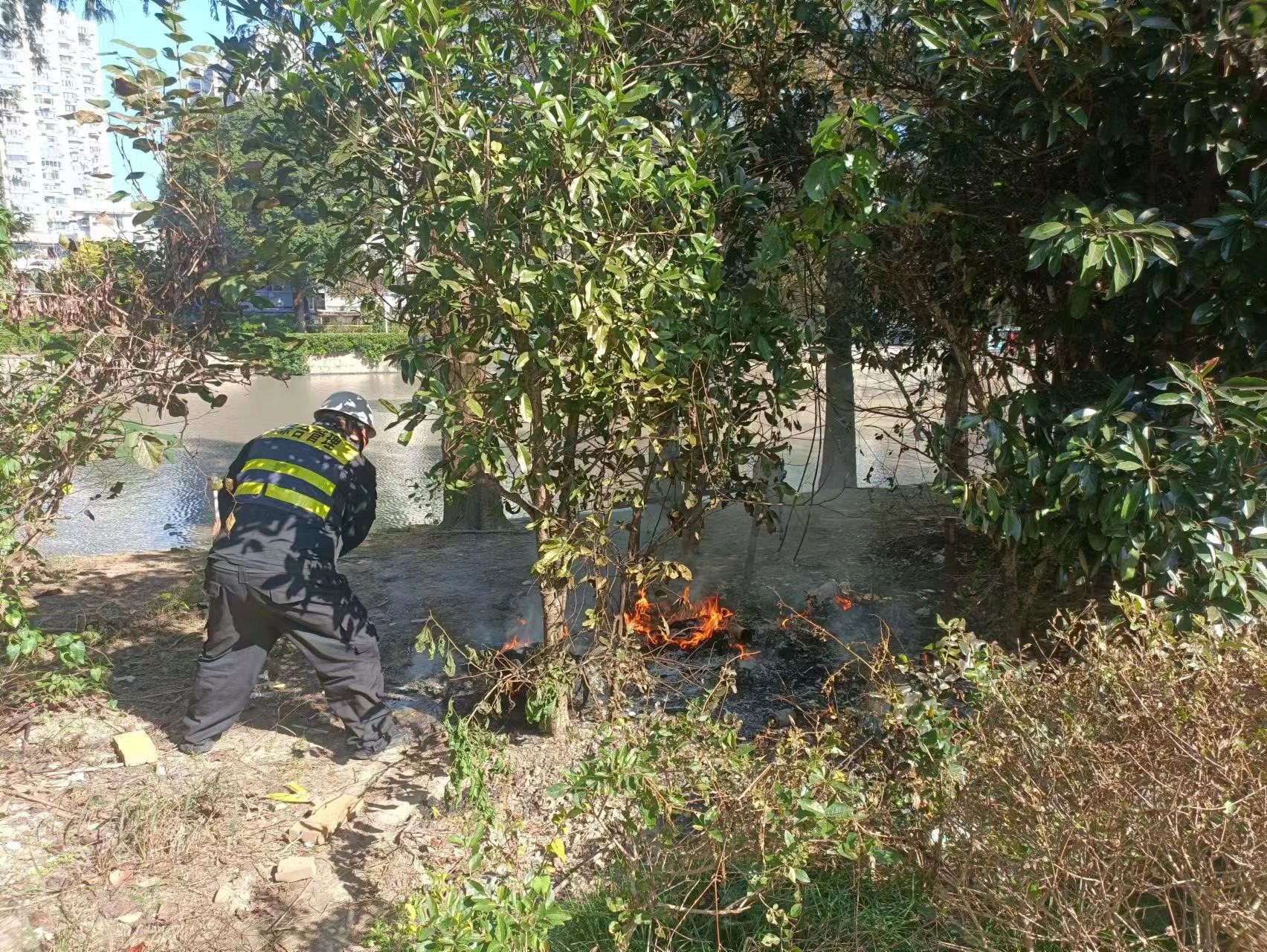10月21日9:30,宗保公司駐浦東新區三林市容項目員工單野和趙樹(shù)寧在三林鎮楊新路小花園巡查時(shí),發(fā)現河邊雜草冒煙起火。兩人立即跑到附近居民家中,借來(lái)水桶提水滅火。經(jīng)過(guò)十幾分鐘的撲救,野火被撲滅,避免了火勢進(jìn)一步擴大和蔓延。