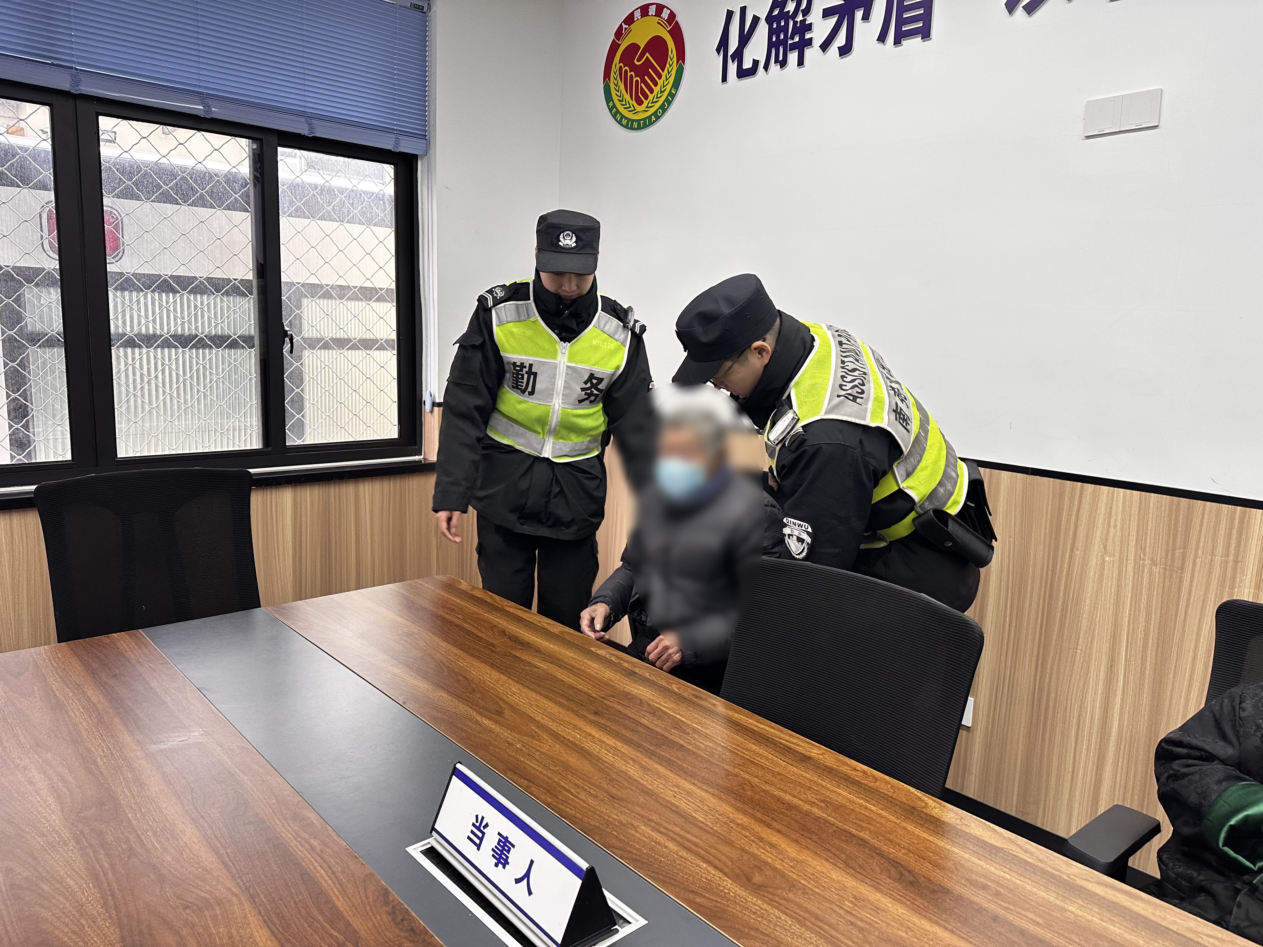 老人稱(chēng)自己找不到回家的路,也不記得家里住址和家人的聯(lián)系電話(huà)。因天氣寒冷,老人凍得瑟瑟發(fā)抖,耿天龍趕緊將老人攙扶到車(chē)上取暖。同時(shí),朱孟培將情況報告派出所值班室,并按指示先將老人帶到派出所。