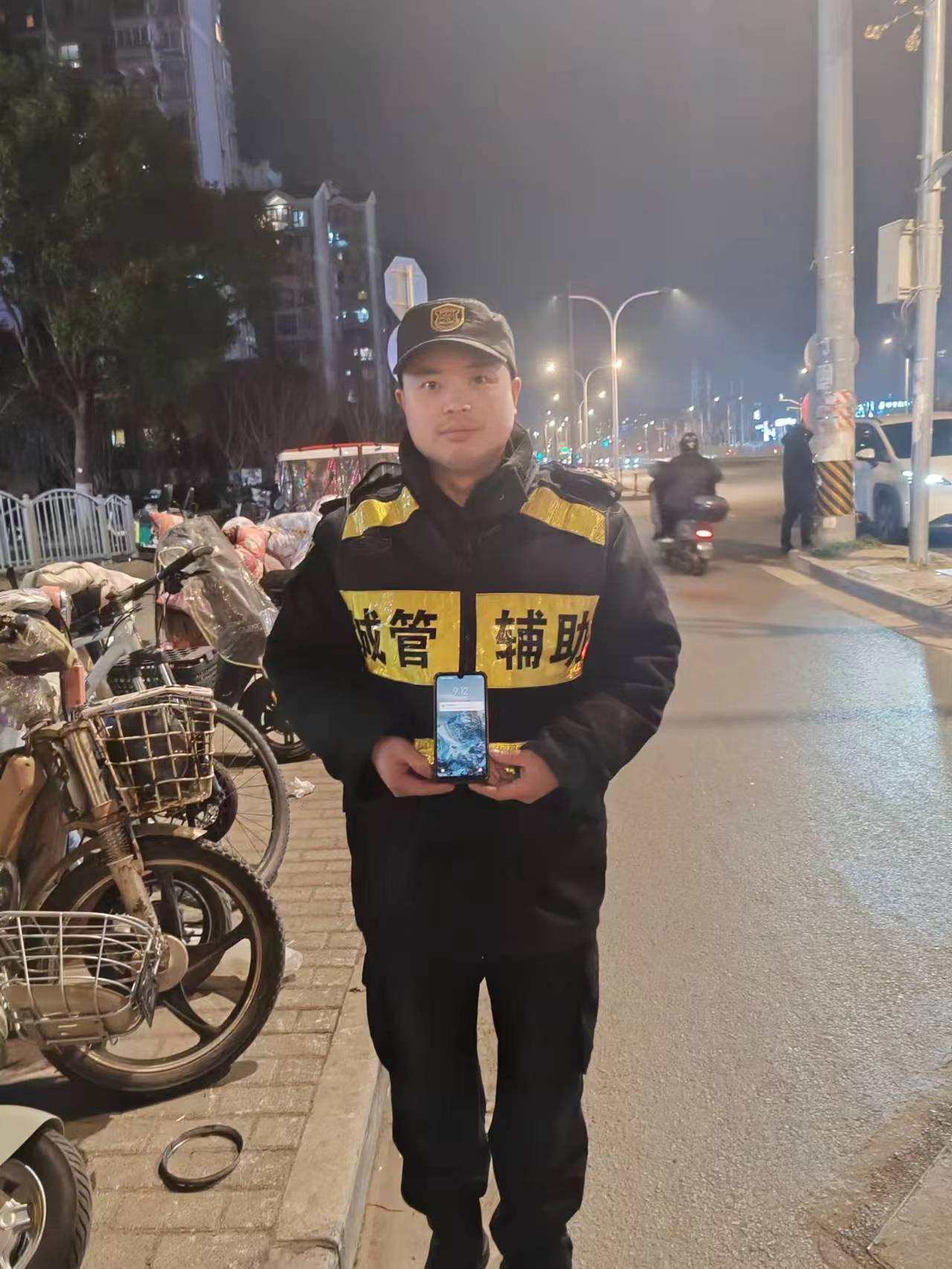 大約過(guò)了15分鐘,一位身穿黑色羽絨服的女士趕到現場(chǎng)尋找手機。甘文兵詳細詢(xún)問(wèn)了女士丟失手機的品牌、顏色、鎖屏密碼,確認其是失主后,就將手機交還給了她。女士拿著(zhù)手機十分高興,再三向甘文兵表示感謝。事后,該女士又特意送來(lái)一面錦旗表達謝意。