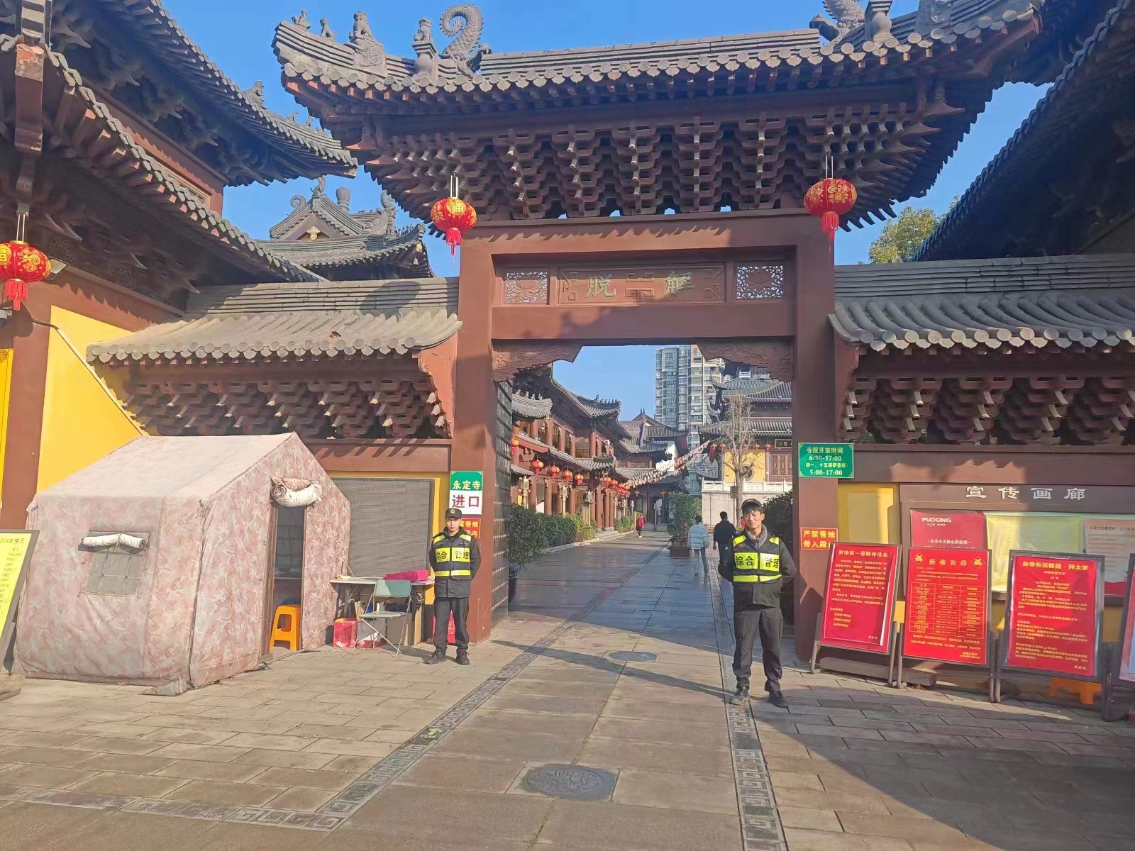 公司受領(lǐng)節日安保任務(wù)后,根據有關(guān)單位的統一部署,按照安保工作要求,結合公司在崗在位員工實(shí)際,制定安保工作方案,開(kāi)展崗前動(dòng)員學(xué)習,明確任務(wù)職責分工,全力以赴配合做好除夕夜寺廟敬香祈福、大客流引導疏散、景區秩序維護等工作。