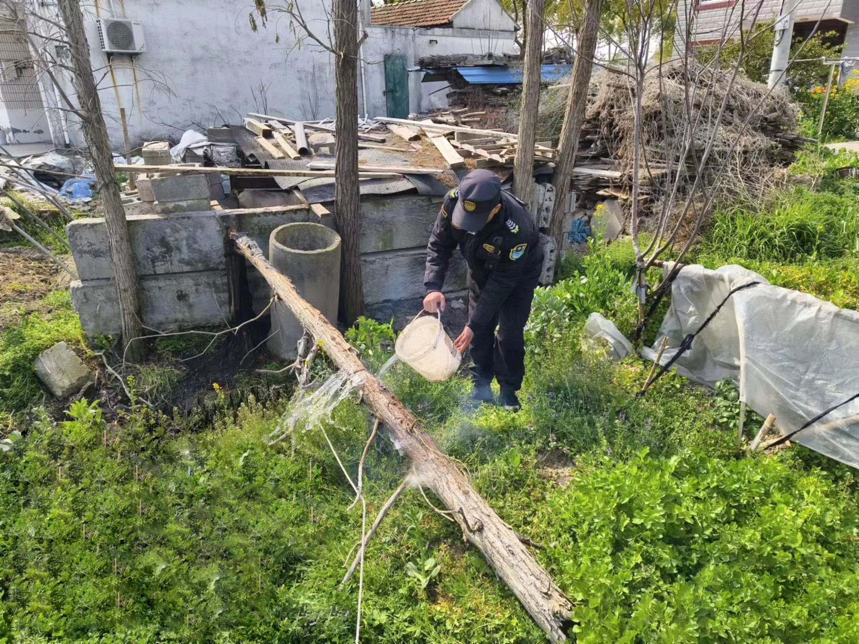 兩人隨即就地取材,使用樹(shù)枝撲打火點(diǎn),用一旁丟棄的水桶取水澆火,并搬移了火點(diǎn)周?chē)目扇嘉?,避免了火勢蔓延,消除了一起火災事故隱患。