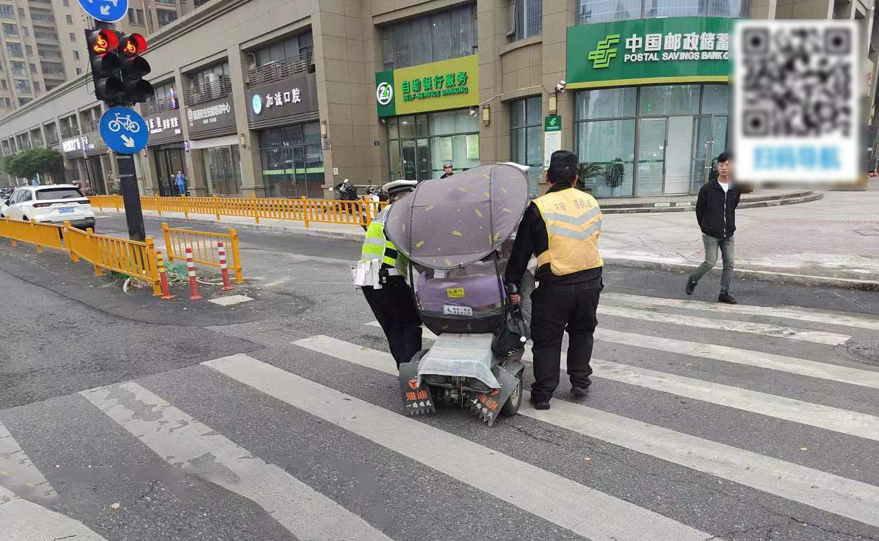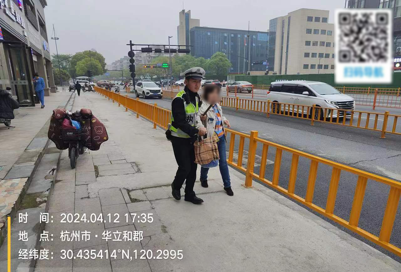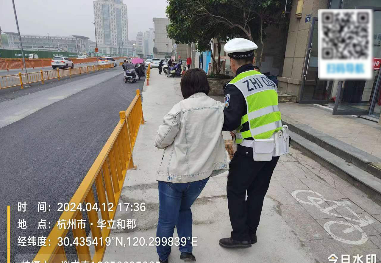 4月12日,浙江民泰公司駐杭州市臨平區東湖交管輔助項目員工熱心幫助代步車(chē)女士。