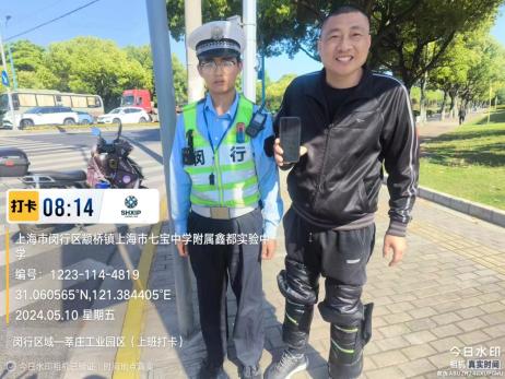 5月14日8:17,宗保公司駐閔行區虹橋交管輔助項目員工殷天門(mén)在吳中路合川路路口執勤時(shí),撿到一部VIVO手機,詢(xún)問(wèn)周?chē)啡藷o(wú)人認領(lǐng)后,便將情況報告了班組長(cháng),并按指示隨時(shí)注意接聽(tīng)失主來(lái)電。直至下班時(shí)間,仍然沒(méi)有人打來(lái)電話(huà)尋找,殷天門(mén)就將手機上交到虹橋派出所,由派出所民警尋找失主。