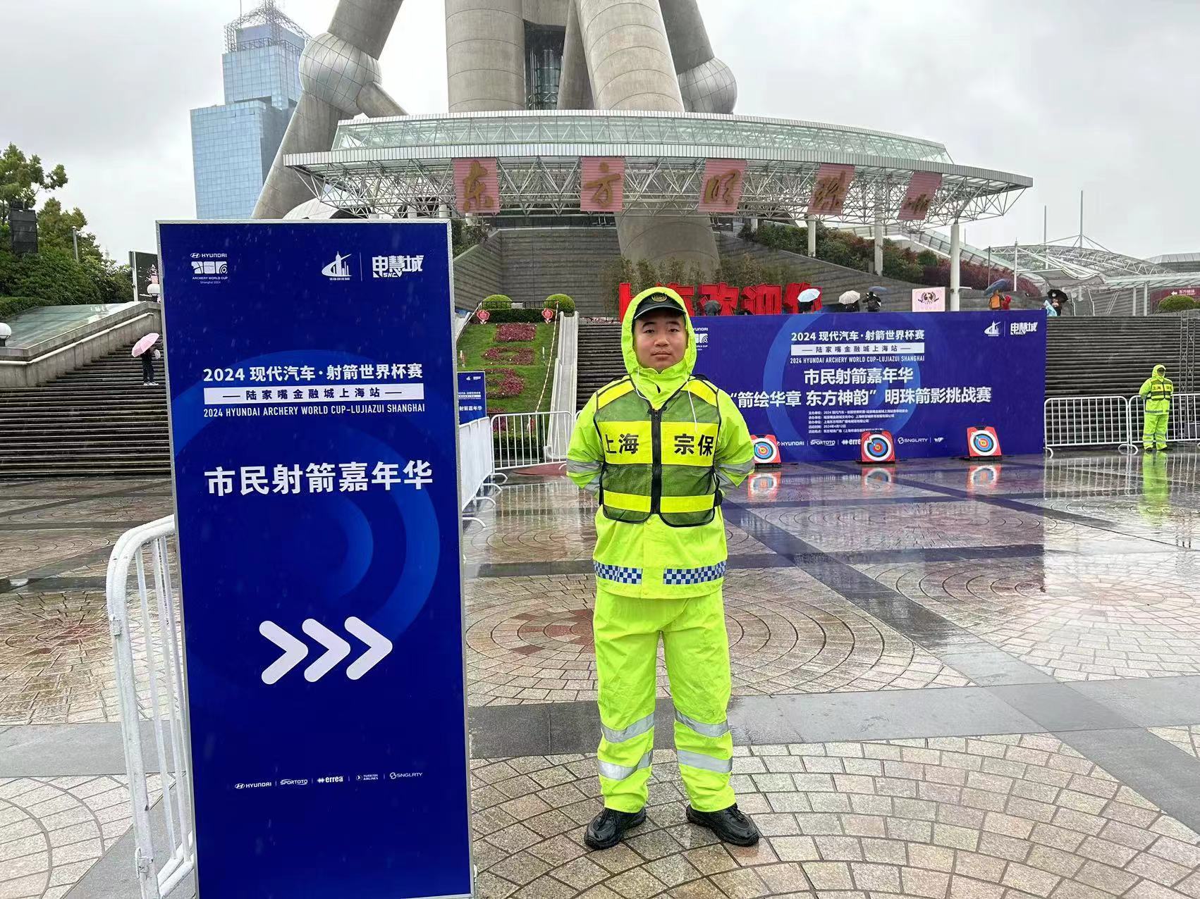 活動(dòng)當天申城持續降雨,全體安保人員不懼風(fēng)雨、堅守崗位,協(xié)助舉辦方做好人流疏導、場(chǎng)地巡查等秩序維護工作,助力完成了2024射箭世界杯賽上海站市民射箭嘉年華啟動(dòng)儀式安保任務(wù)。