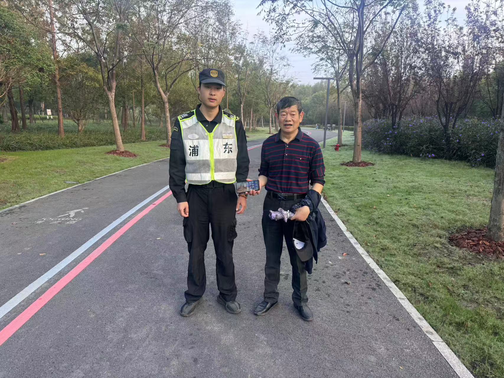 10月18日6:30 ,宗保公司駐浦東新區康橋鎮沔青公園項目員工高興波在落英橋附近巡查時(shí),撿到一部華為手機。報告組長(cháng)后,按指示在現場(chǎng)等待失主。