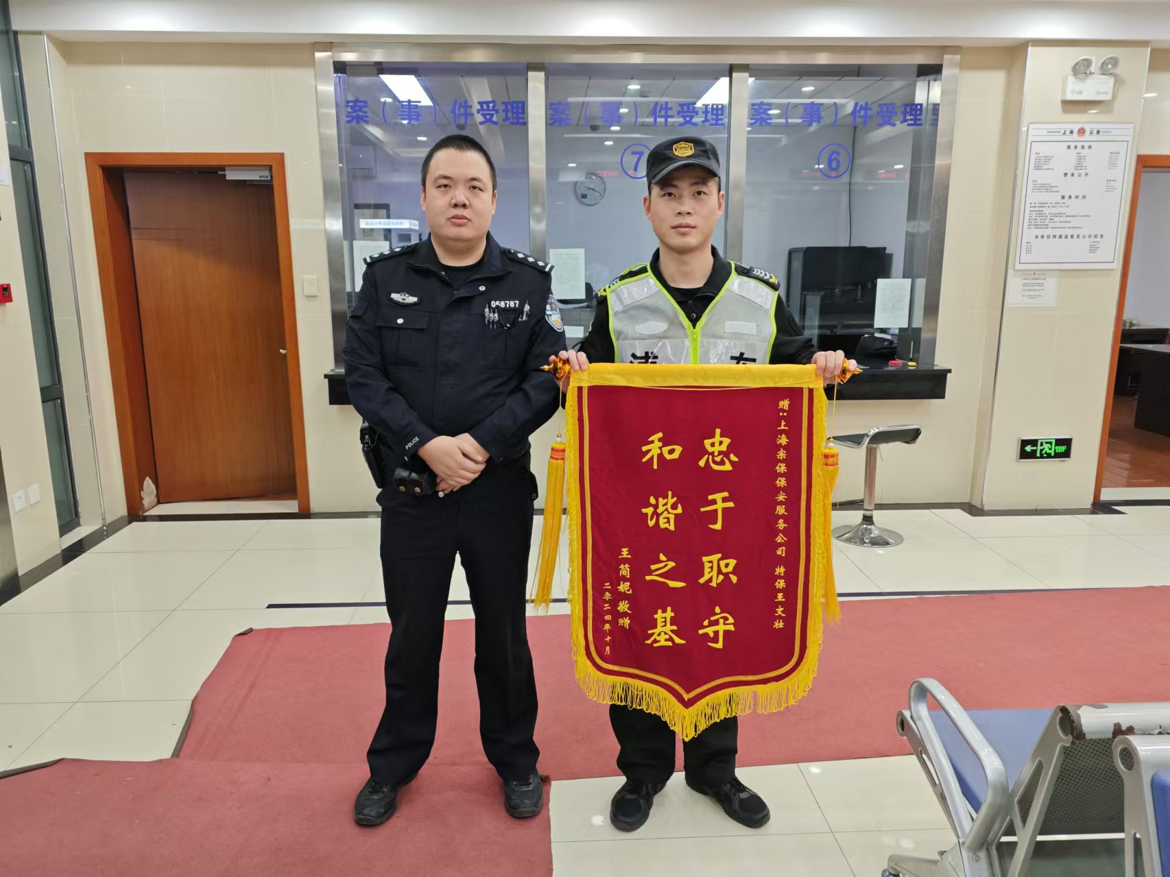 10月27日,宗保公司駐浦東新區新場(chǎng)派出所輔助項目收到市民王女士贈送的一面繡有“忠于職守 和諧之基”的錦旗,感謝公司員工王文壯耐心細致成功調解矛盾。