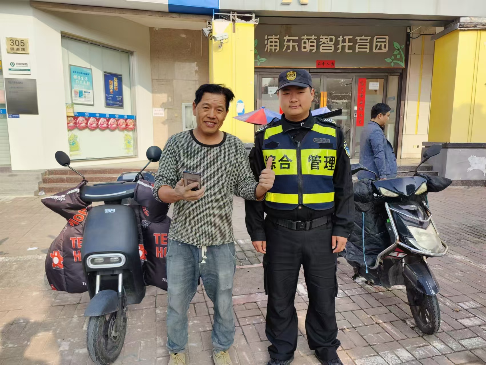 宗保公司駐浦東新區高行市容項目員工撿到手機交還失主