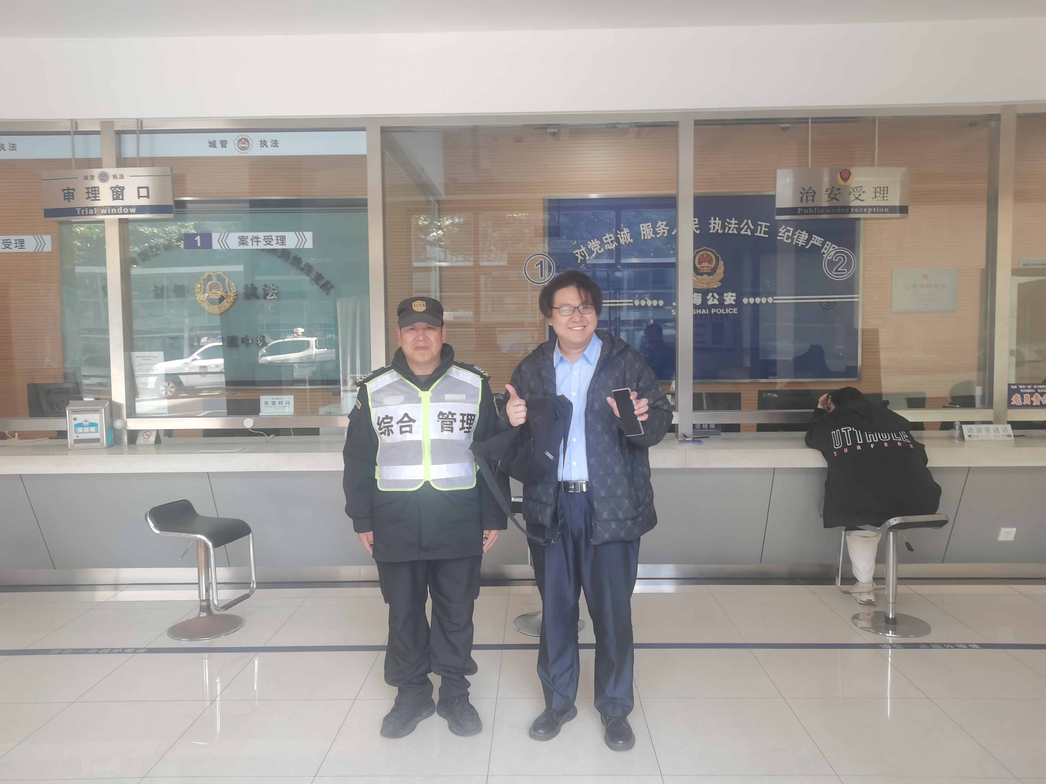宗保公司駐閔行區虹橋交管輔助項目員工撿到手機交還失主