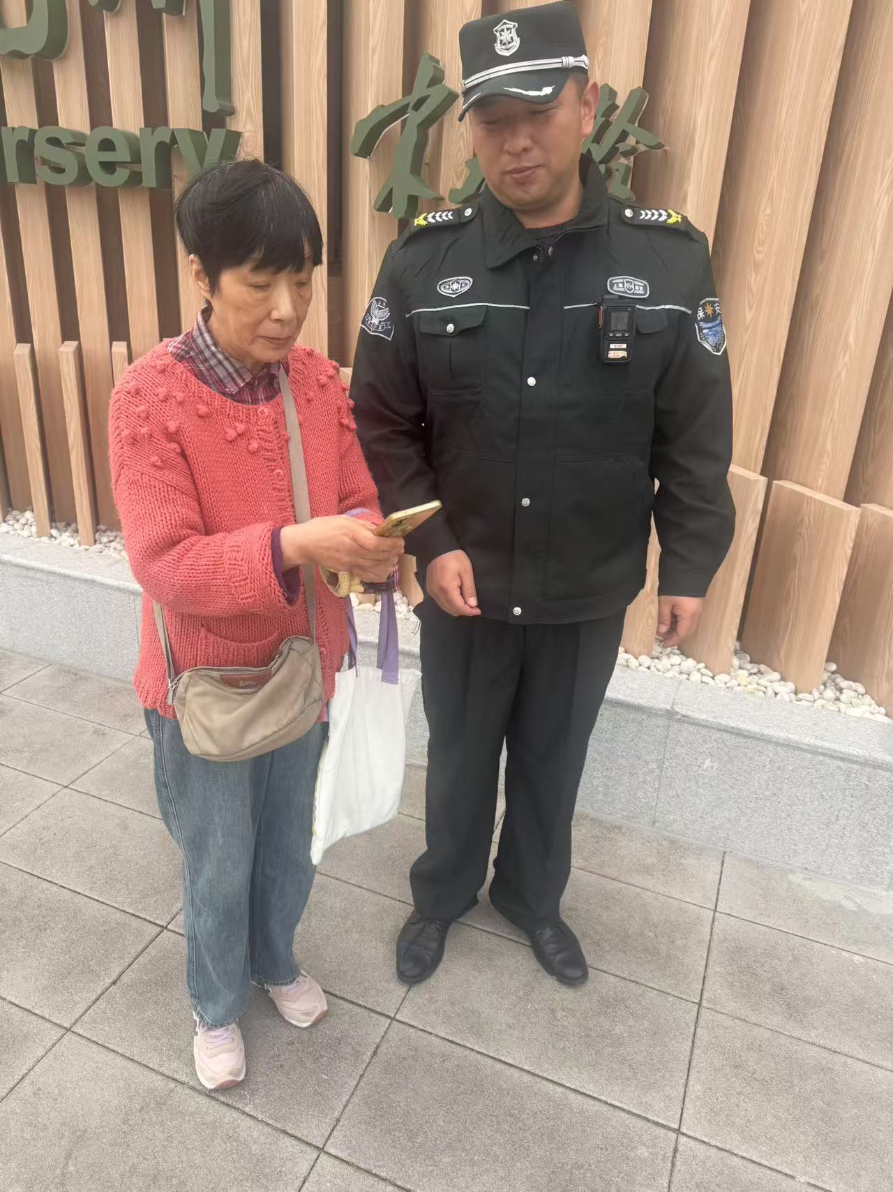 過(guò)了1個(gè)小時(shí)左右,一位神情焦急的阿姨匆匆趕來(lái),急切地詢(xún)問(wèn)是否有人撿到一部手機。正在值勤的王偉偉見(jiàn)狀,趕忙上前安慰阿姨,隨后帶阿姨到門(mén)衛室認領(lǐng)手機。