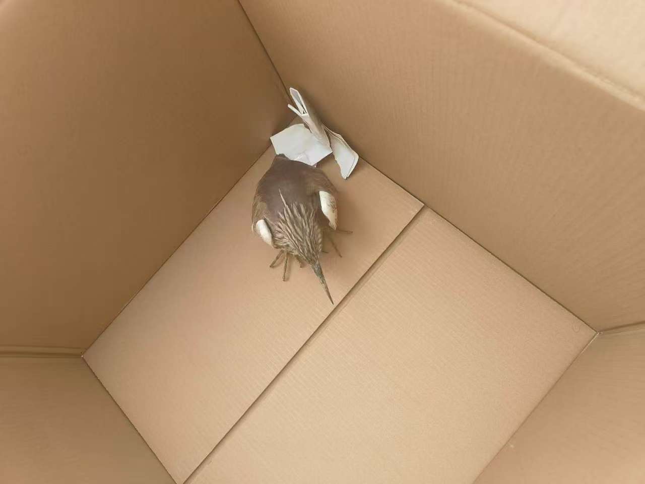 秦文重因看著(zhù)該鳥(niǎo)不像普通的鳥(niǎo)類(lèi)就上網(wǎng)查詢(xún),確認其是國家一級保護動(dòng)物——池鷺,隨即便趕緊找來(lái)一個(gè)干凈的紙箱,小心翼翼地將受傷的池鷺?lè )旁谙鋬?,并向洋山公安處報告了情況。
