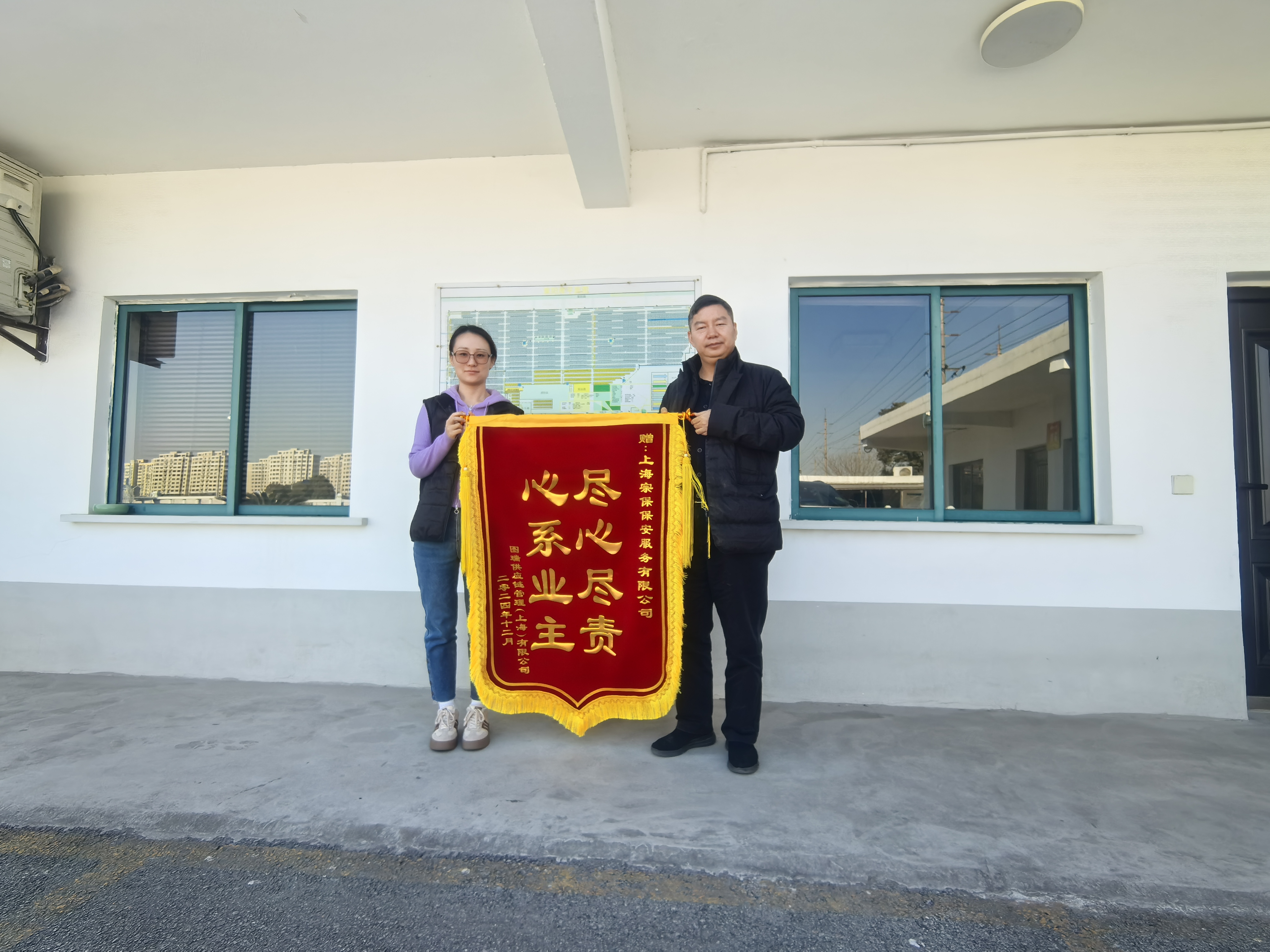 1月17日,宗保公司收到國瑞供應鏈管理(上海)有限公司贈送的一面繡有“盡心盡責 心系業(yè)主”的錦旗,感謝公司員工付出的辛勤勞動(dòng),希望公司員工為守護國瑞供應鏈管理(上海)有限公司高質(zhì)量發(fā)展作出新的貢獻。