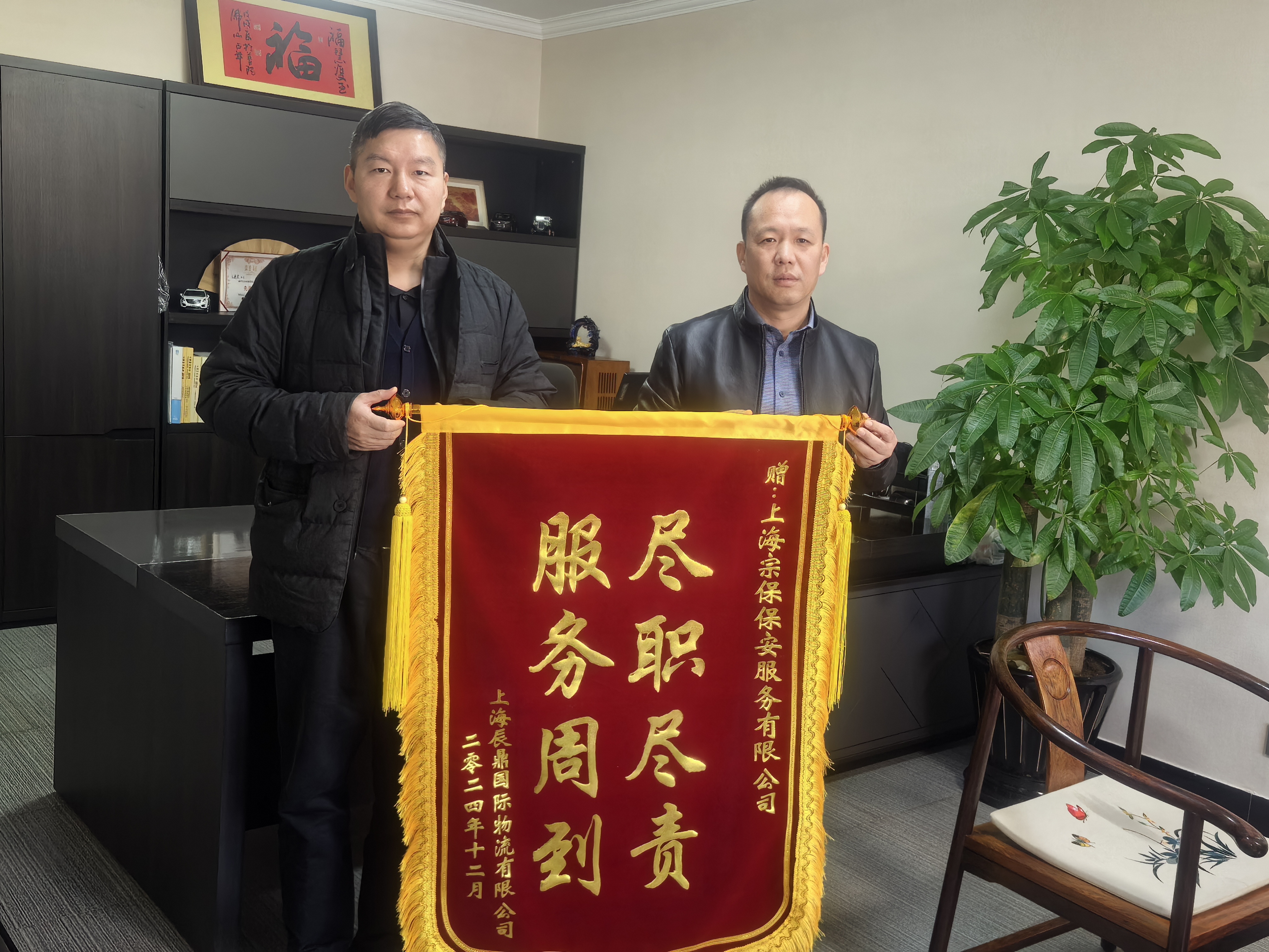 1月17日,宗保公司收到上海辰鼎國際物流有限公司贈送的繡有“盡職盡責 服務(wù)周到”的錦旗,感謝公司對物流園工作的大力支持和配合,贊揚公司項目員工在協(xié)助物流園區安保和貨物監管工作中的出色表現。(供稿人:谷報海)