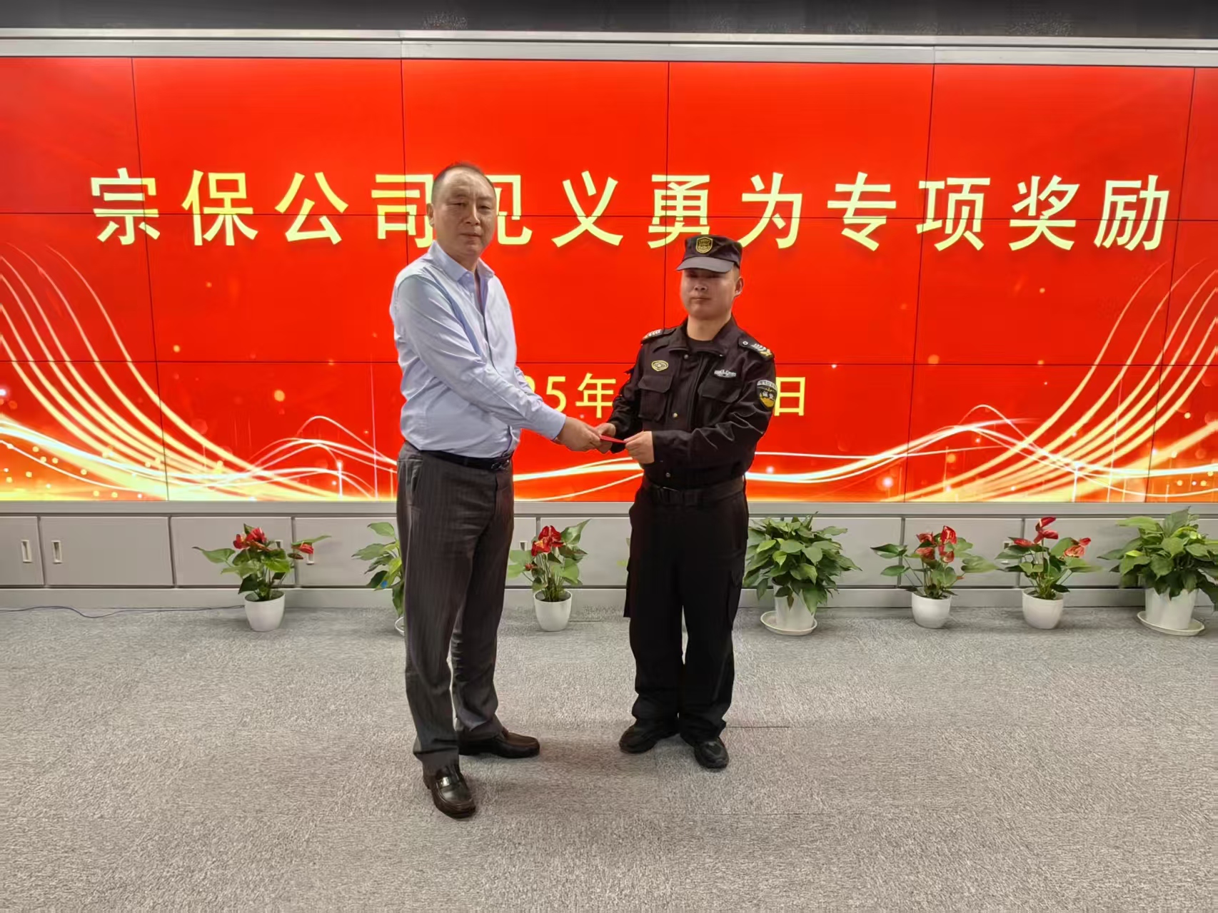 3月26日,上海宗保保安服務(wù)有限公司在浦東新區周浦基地舉行儀式,向在值勤期間成功化解突發(fā)事件的員工何征明頒發(fā)公司見(jiàn)義勇為專(zhuān)項獎勵。