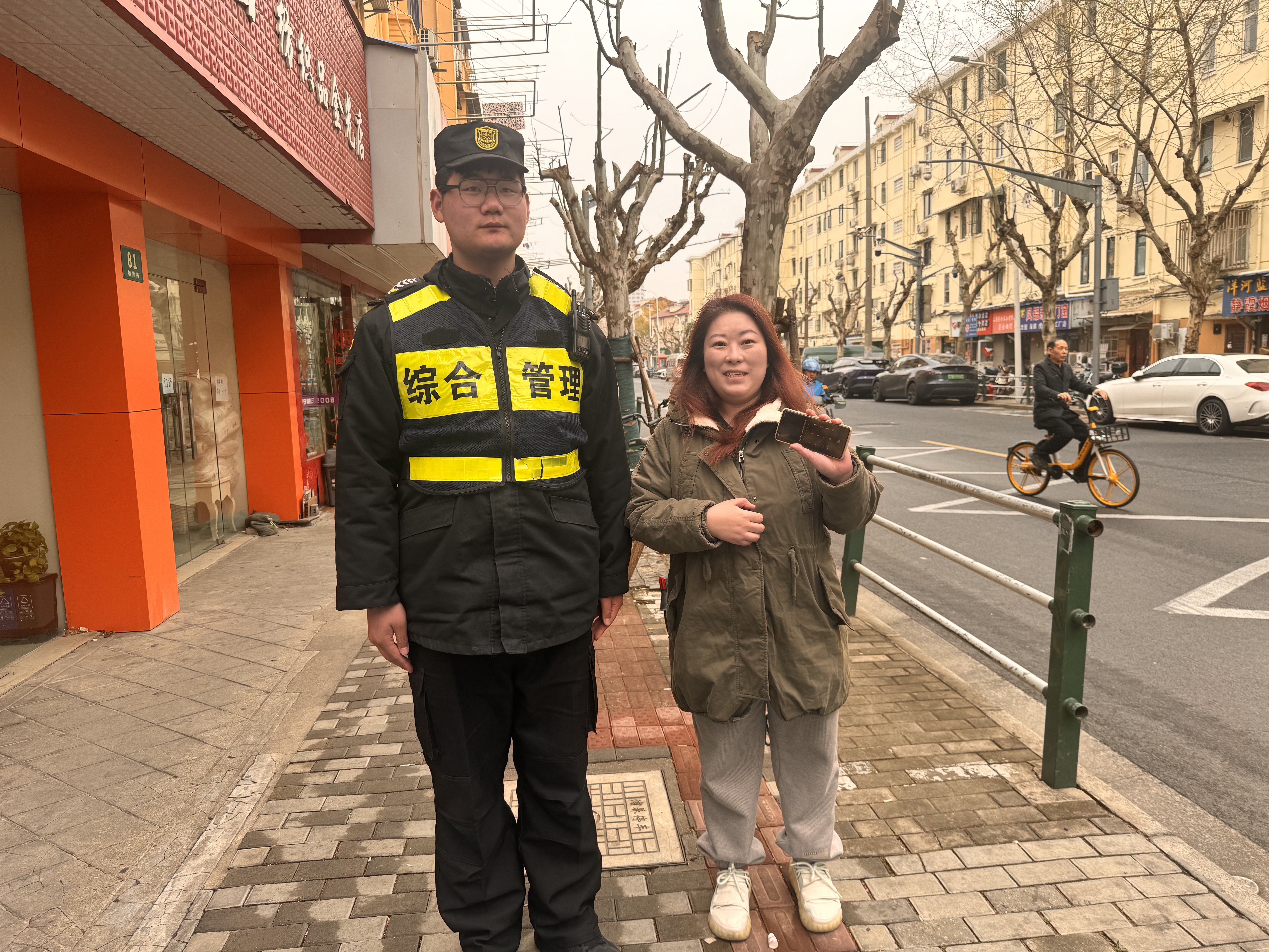 3月31日16:20,宗保公司駐浦東新區周浦市容項目員工田紅開(kāi)在年家浜路巡查時(shí),撿到一部紫色華為手機??紤]到失主可能會(huì )返回尋找,就在原地邊值勤邊等待。