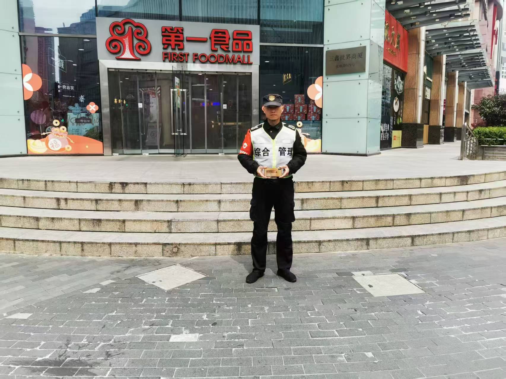 06宗保公司駐浦東新區陸家嘴社區市容項目員工撿到女士挎包多方聯(lián)系歸還失主