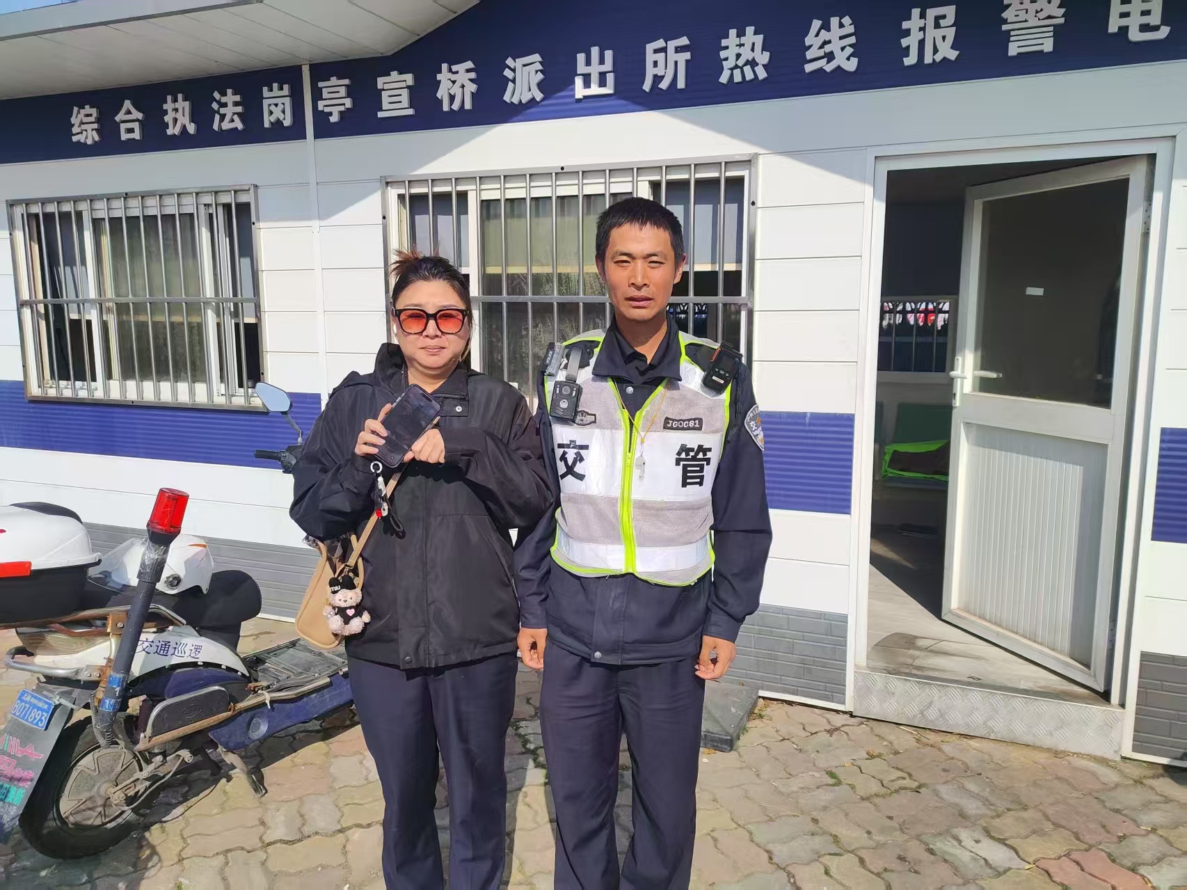 很快,一位女士趕到現場(chǎng)認領(lǐng)手機。田紅開(kāi)核實(shí)確認其是失主邵女士后,就把手機歸還給了她。邵女士對田紅開(kāi)撿到手機原地等待還給自己十分感激,連連向他道謝。