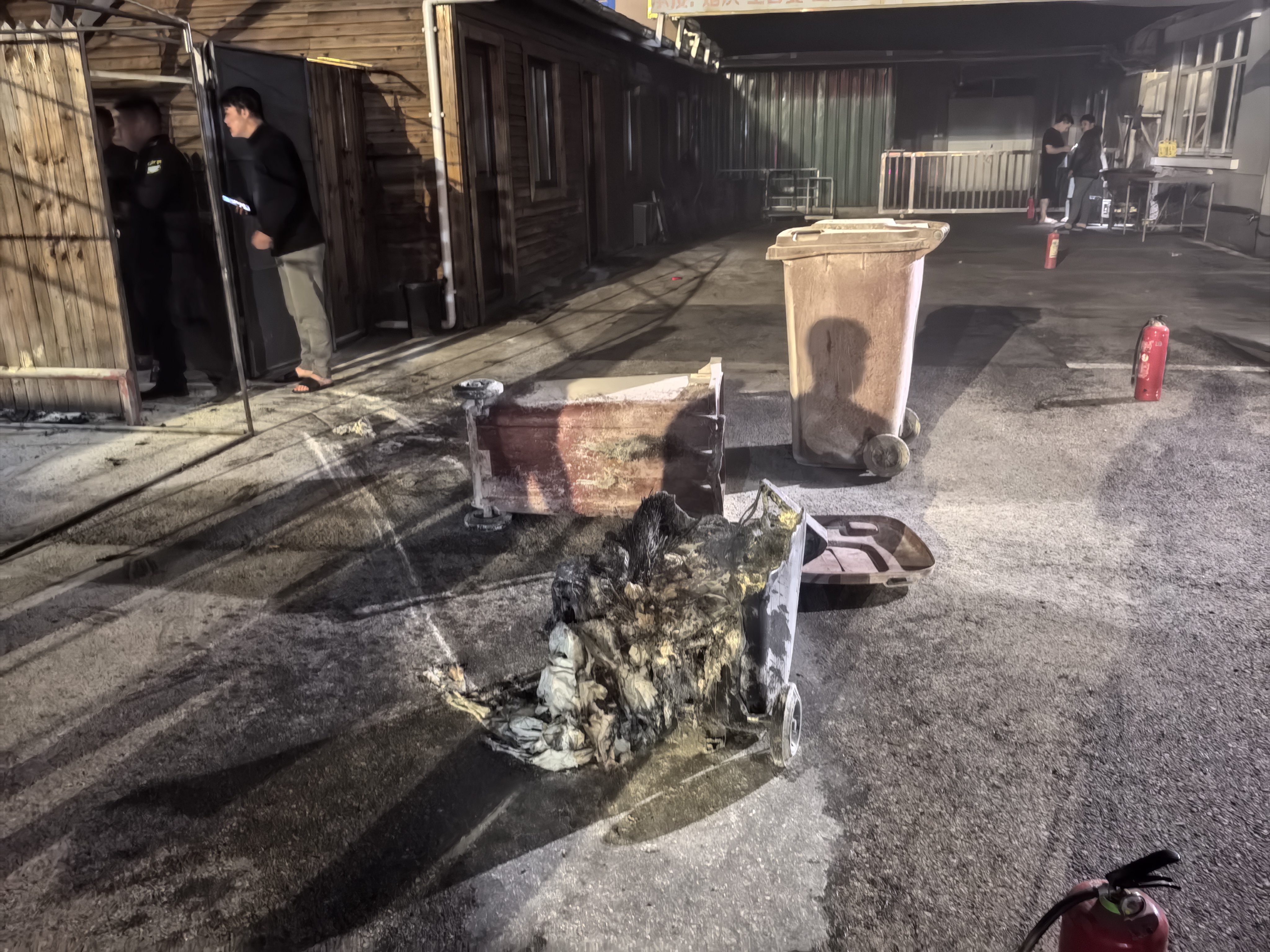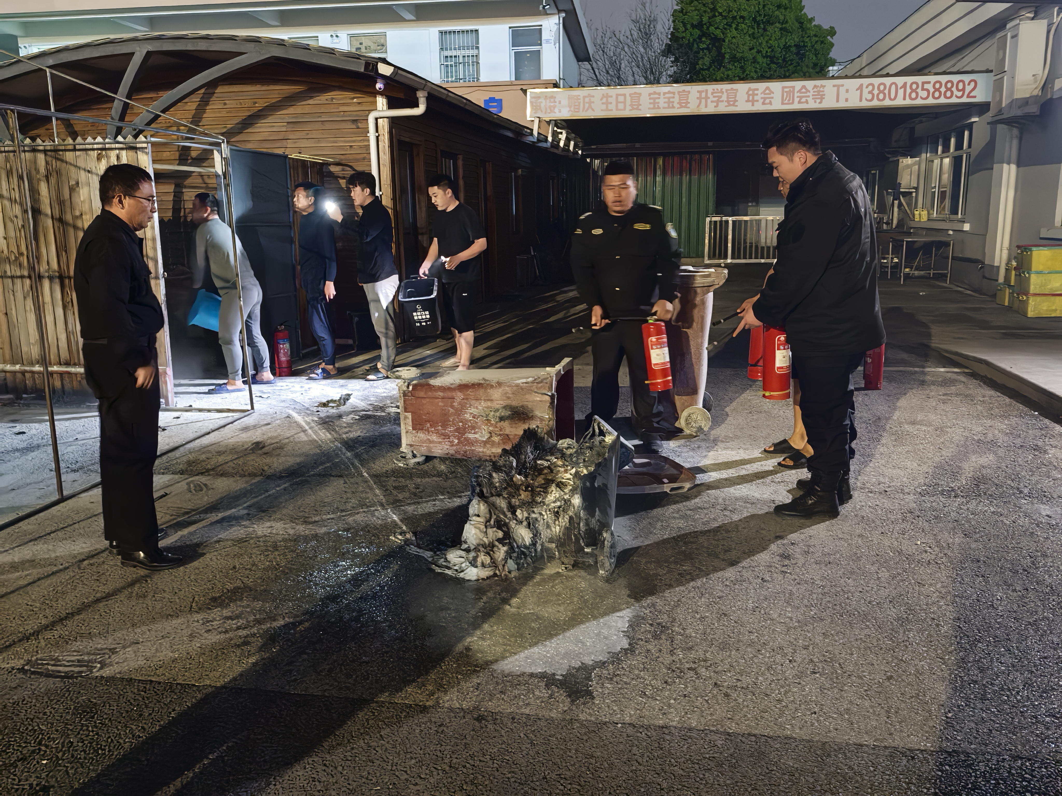 當晚21:08,公司員工徐晴第一時(shí)間發(fā)現火情,立即報告隊長(cháng)并大聲呼喊同事支援。數名員工迅速提起滅火器沖向火場(chǎng),但由于活動(dòng)中心電動(dòng)伸縮門(mén)緊閉,救援行動(dòng)一度受阻。危急時(shí)刻,兩名員工毫不猶豫翻墻進(jìn)入火場(chǎng),先行展開(kāi)撲救,其余隊員則合力推開(kāi)伸縮門(mén),攜帶滅火器材迅速增援。經(jīng)過(guò)數分鐘的緊張撲救,明火被徹底撲滅,現場(chǎng)無(wú)人員傷亡。