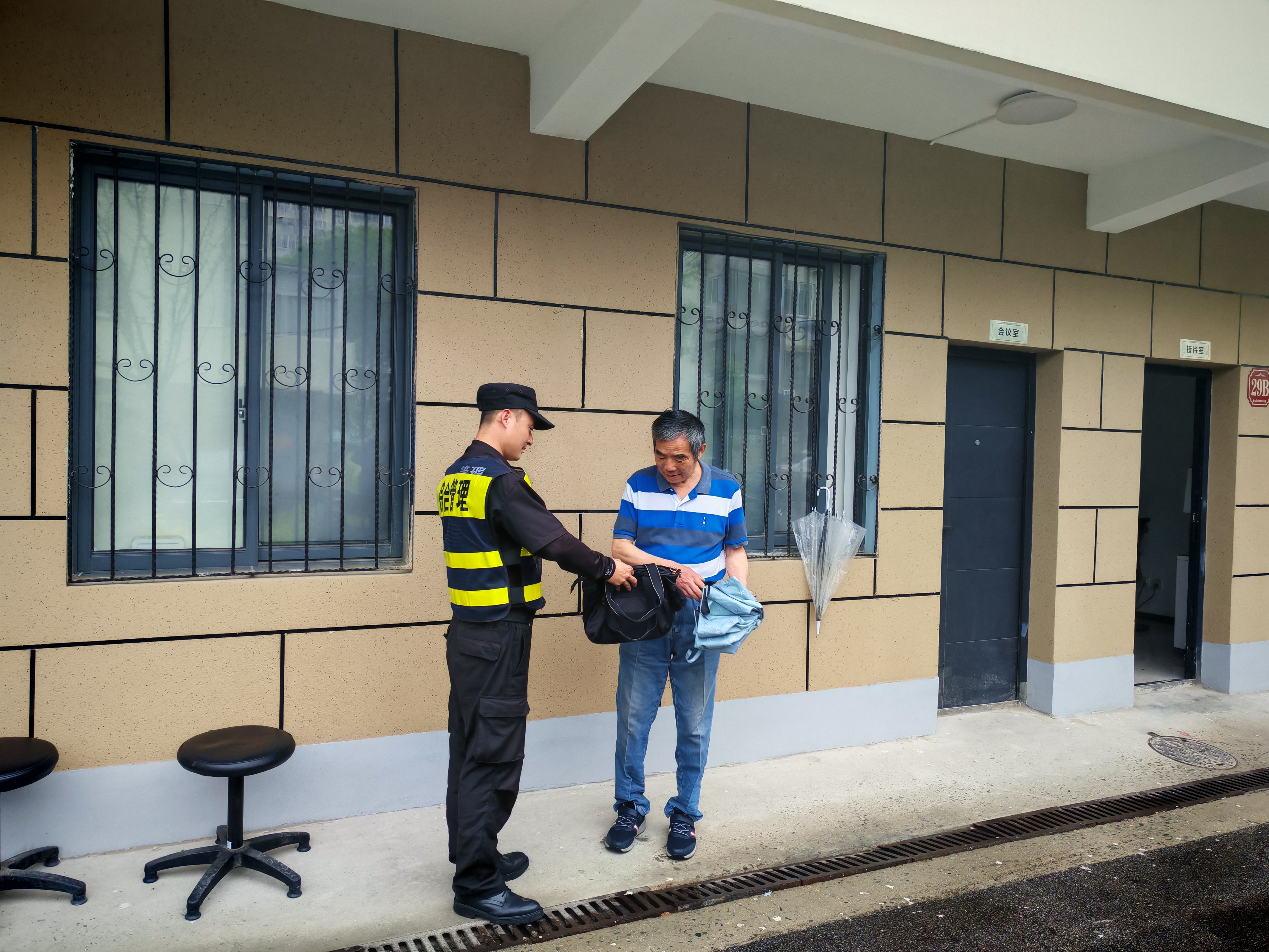 劉飛隨即將情況報告了項目負責人,并按指示在原地等待失主。6:50左右,一位男士急匆匆趕到現場(chǎng)尋找手提包。