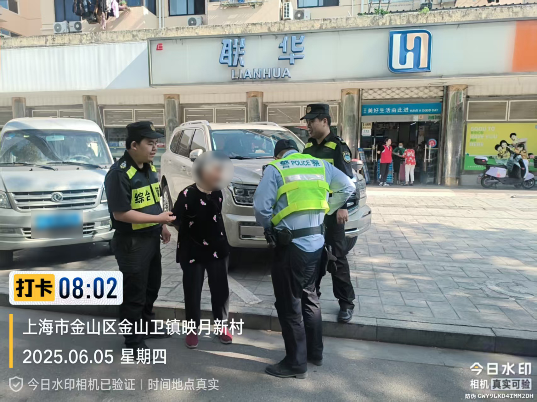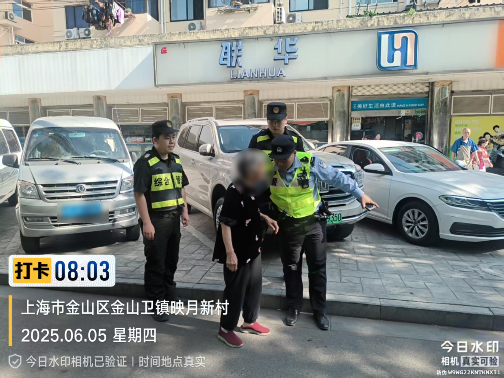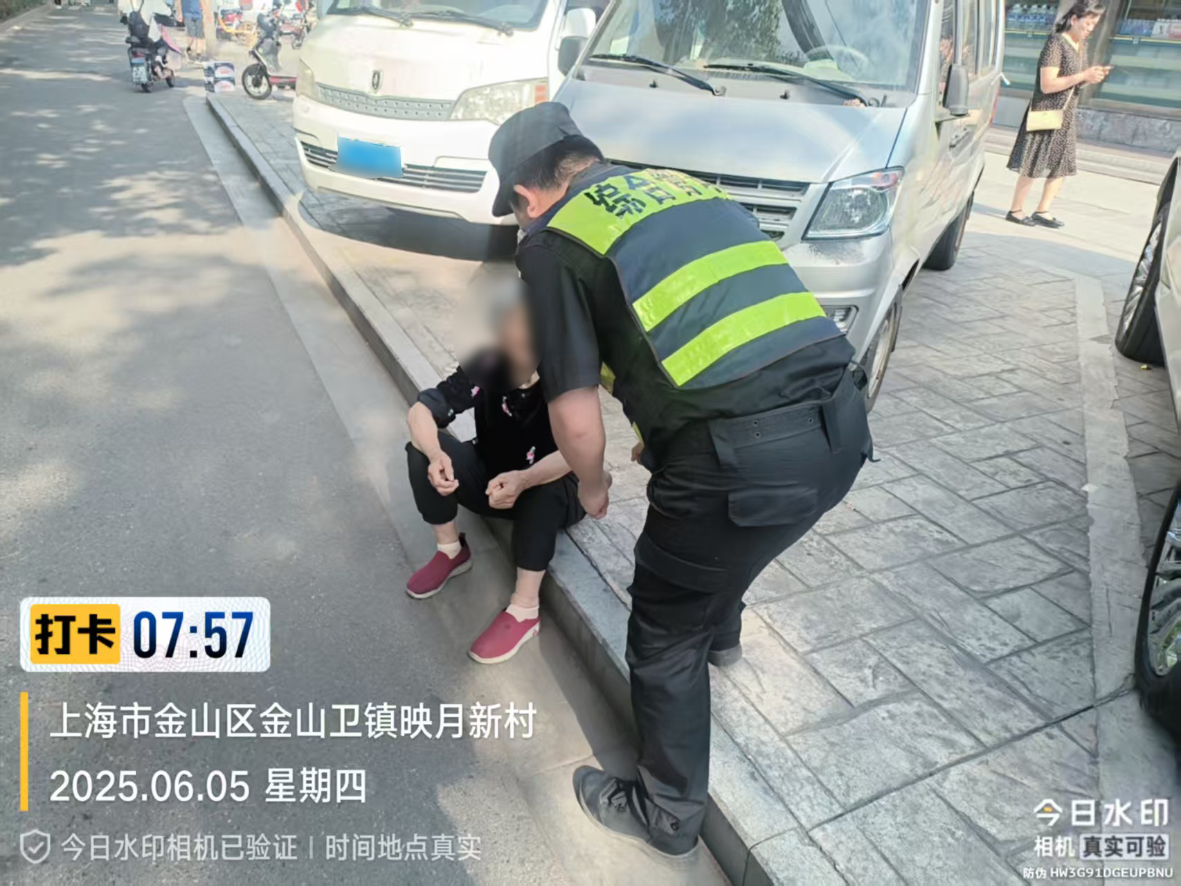 6月5日,宗保公司駐金山區金山衛鎮城管輔助項目員工熱心幫助迷路老人安全回家。
