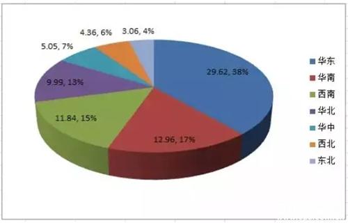 從市場(chǎng)區域來(lái)看,2018年上半年,我國城市智能交通千萬(wàn)項目市場(chǎng)主要集中在我國華東地區(如圖2所示)。市場(chǎng)區域排在前十的省及直轄市依次包括山東、廣東、四川、江蘇、安徽、廣西、天津、浙江、河北、上海,其中華東地區就有5個(gè)省及直轄市入榜,前十市場(chǎng)區域中華東地區市場(chǎng)總計千萬(wàn)項目數185項,市場(chǎng)規??傆嫾s28億,約占2018年上半年我國城市智能交通千萬(wàn)項目市場(chǎng)規模的35.4%。