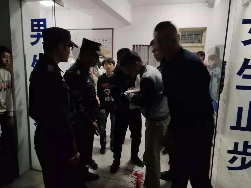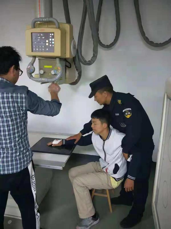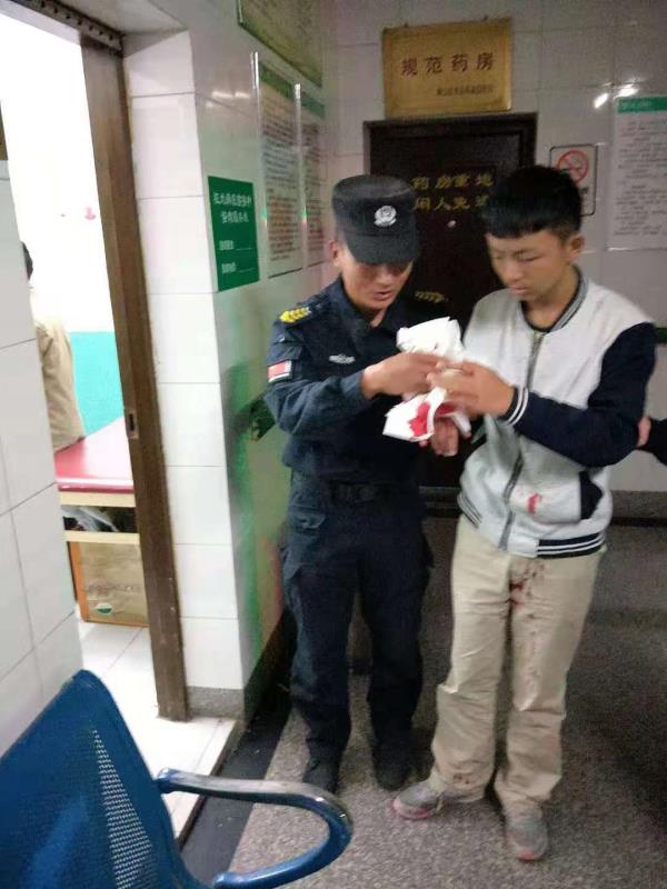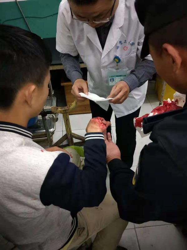 當天18:30分,黃山二中九年級六班學(xué)生王洋在宿舍樓下玻璃門(mén)上做引體向上,不小心把手碰在玻璃上,嚴重受傷,血流滿(mǎn)地。因失血過(guò)多加上驚嚇,王洋嘴唇發(fā)白,身體站不穩。 此時(shí)正在附近訓練的宗保特保隊員得知消息后,第一時(shí)間趕到學(xué)校,把王洋送到最近的甘棠醫院治療,同時(shí)與學(xué)校老師取得聯(lián)系。因傷勢嚴重,王洋被甘棠醫院拒收,后又不得不送到龍井醫院。期間,李鵬程等宗保特保隊員一路狂奔,送醫院、轉醫院、掛號、找醫生,全程陪護學(xué)生做完一系列的檢查。經(jīng)過(guò)緊急救治,該學(xué)生已無(wú)大礙。
