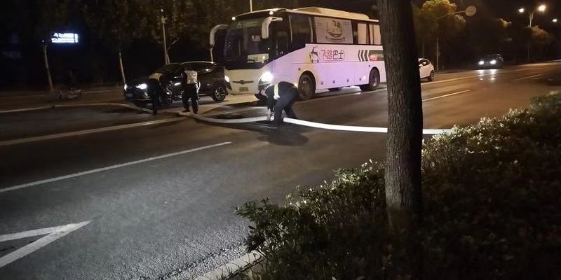 火情刻不容緩,隊員們立即撥打了110、119。在黃路派出所出警之后,協(xié)助民警疏散路上行人、指揮交通、維持現場(chǎng)秩序。等待消防隊到達現場(chǎng)后,經(jīng)過(guò)半小時(shí)的努力撲救,大火終于被撲滅。慶幸的是火情發(fā)現及時(shí),未造成損失。