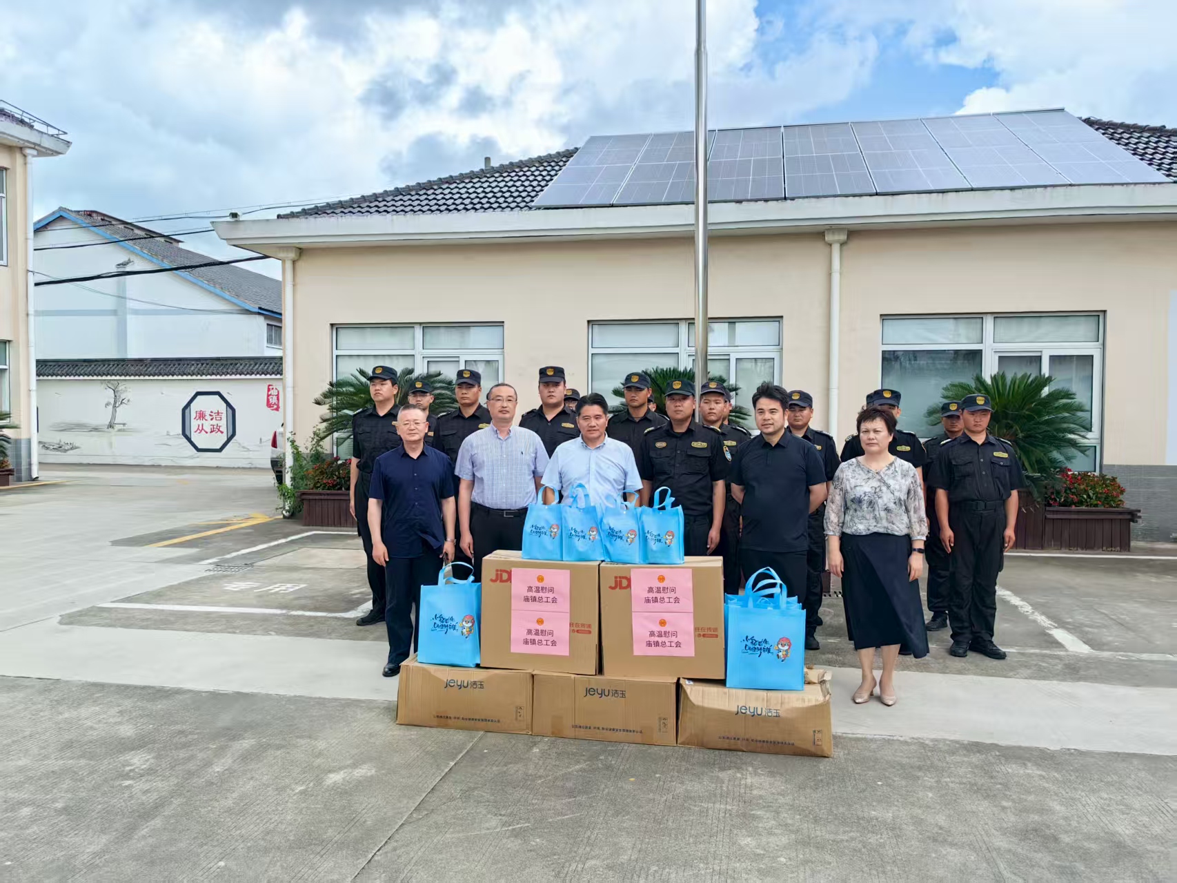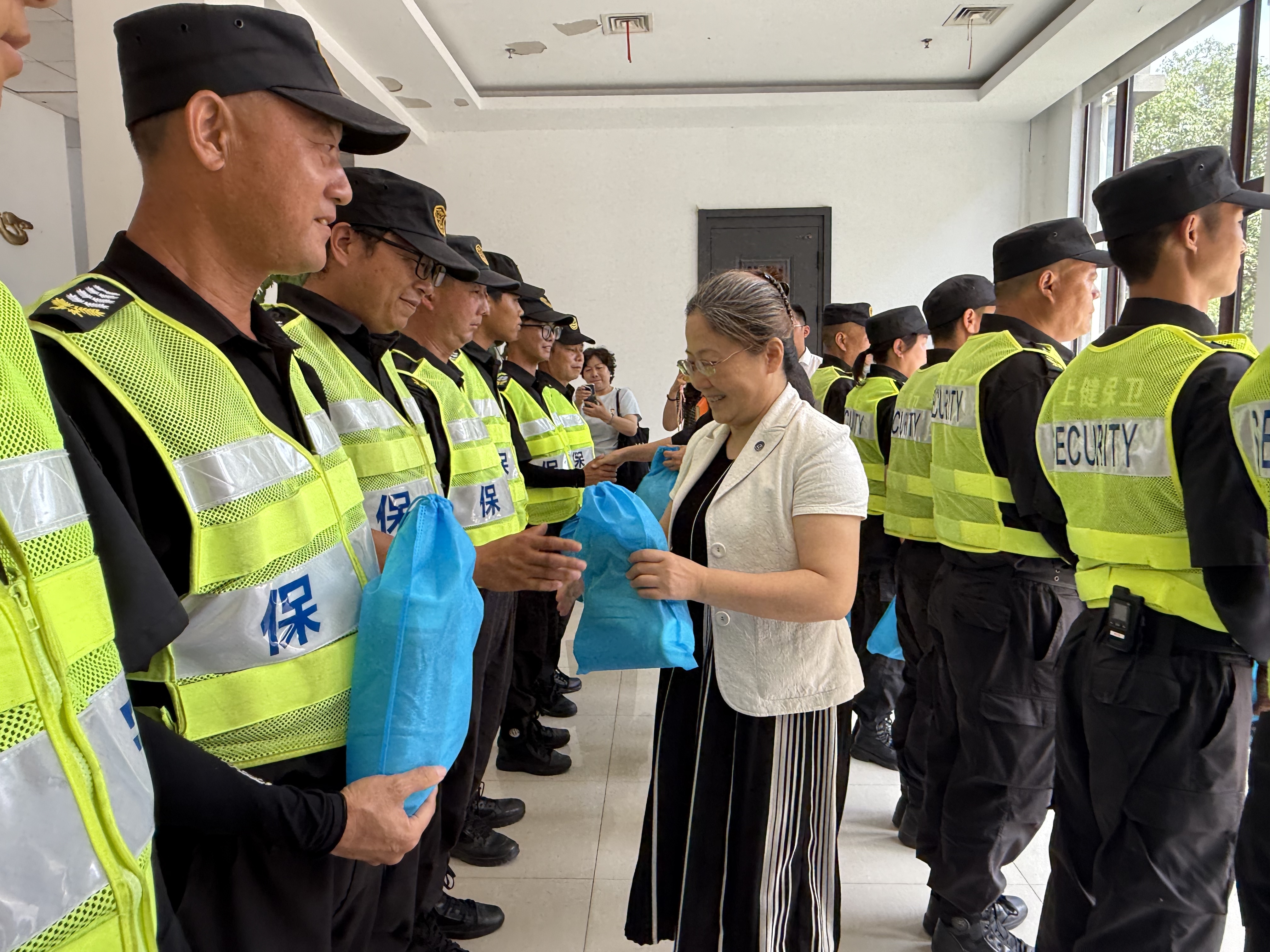 7月10日,上海健康醫學(xué)院黨委書(shū)記郭永瑾一行,看望慰問(wèn)高溫下堅守崗位的宗保公司員工,為他們送上防暑降溫用品,代表醫學(xué)院向公司安保人員致以關(guān)心和問(wèn)候,肯定公司安保人員為維護醫學(xué)院秩序所付出的辛勤勞動(dòng),叮囑大家做好防暑降溫,照顧好自己身體。