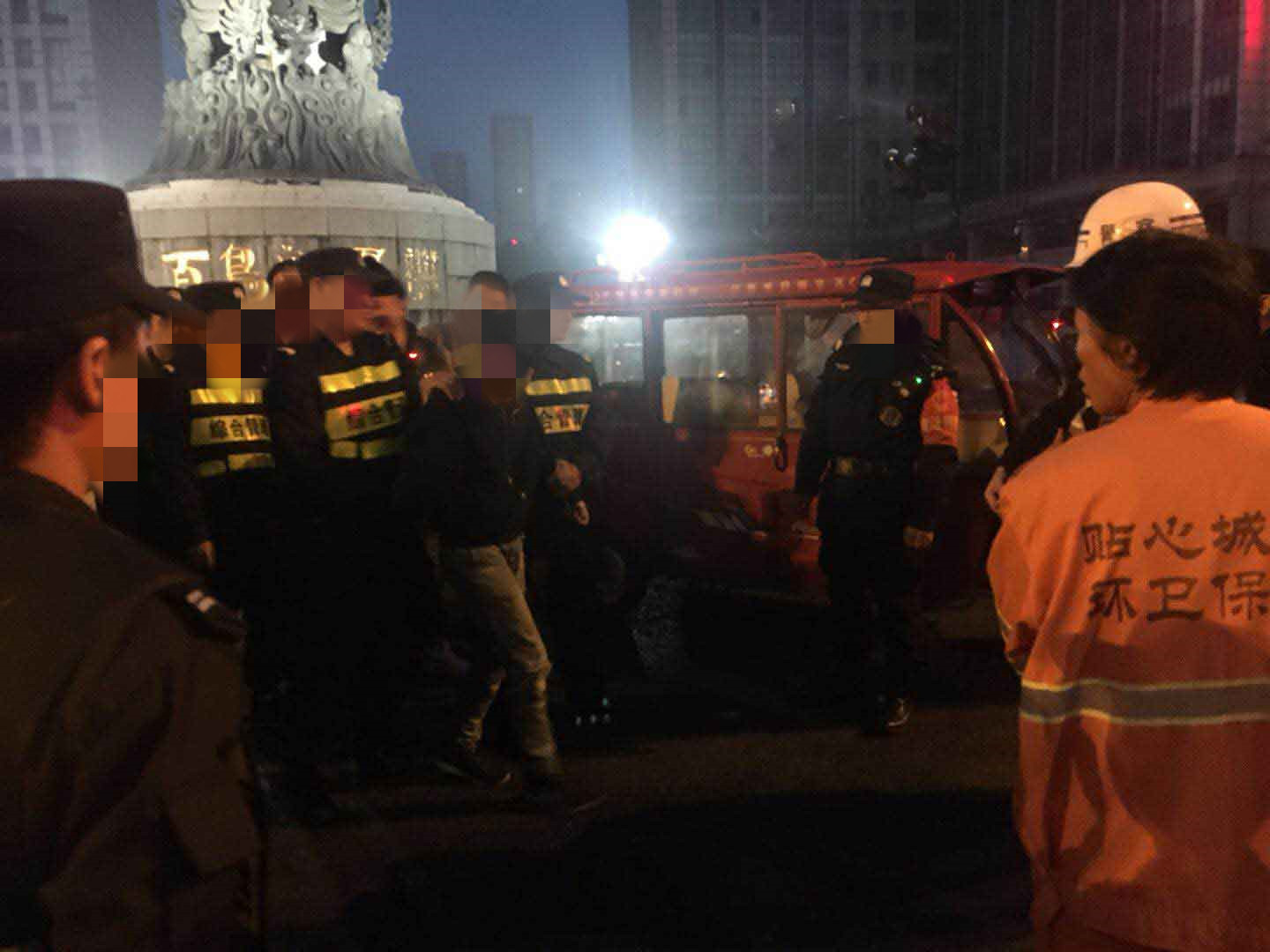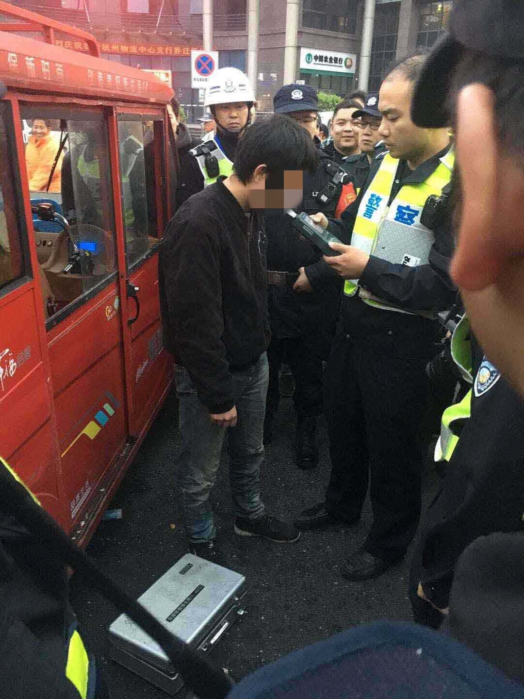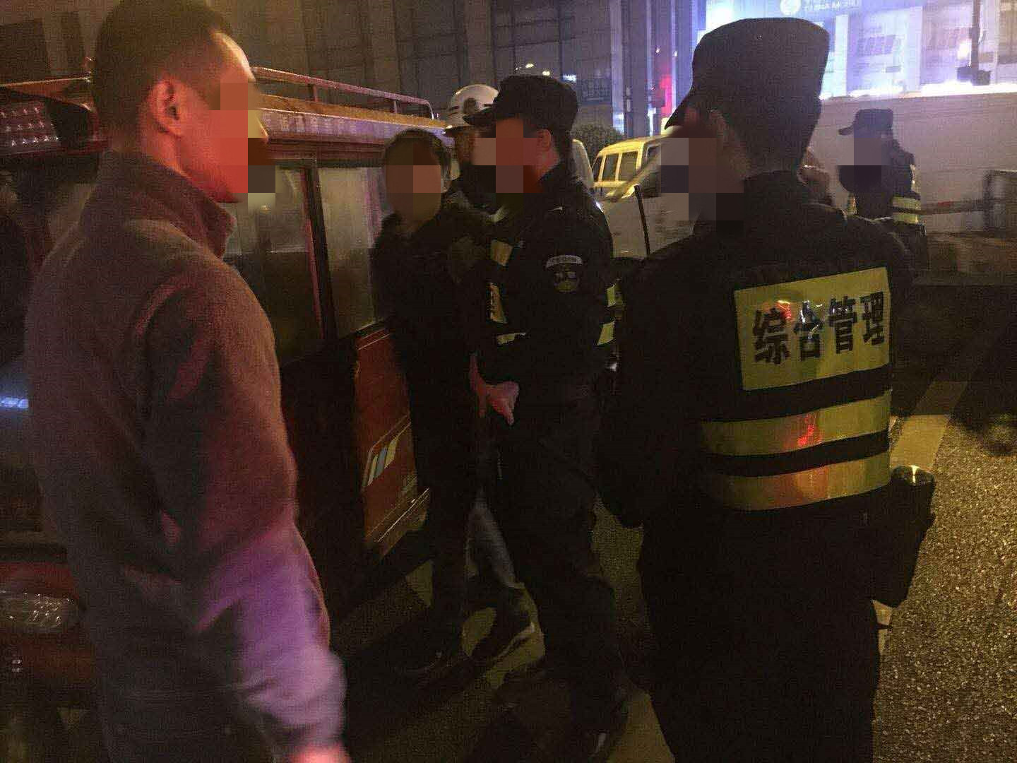 凌晨04:05,一輛機動(dòng)車(chē)和一輛非載客三輪車(chē)發(fā)生刮擦,造成道路擁堵。良渚項目隊長(cháng)張耒林立即報告值班民警,并帶領(lǐng)隊員趕到現場(chǎng),一方面維護現場(chǎng)秩序,另一方面對擁堵路段進(jìn)行車(chē)輛疏導。當時(shí),肇事三輪車(chē)駕駛員滿(mǎn)身酒氣,不斷地去拉扯和辱罵機動(dòng)車(chē)駕駛員,對勸阻的特保隊員同樣辱罵、推搓,并語(yǔ)言威脅。
