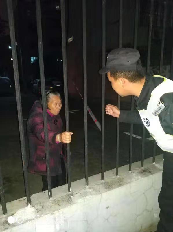當天,當班民警要求隊員協(xié)查一名走失老奶奶。21:50分左右,余文川和唐慶輝兩名隊員巡到周東路周東二村小區的時(shí)候,發(fā)現了小區的圍欄里面黑暗處有個(gè)老人。隊員想到了上崗時(shí)民警安排的注意事項,立即上前詢(xún)問(wèn)老奶奶的情況。但是老奶奶神志有點(diǎn)兒恍惚,說(shuō)不清楚她家在哪,也不知道在這個(gè)小區干什么。隨后兩名隊員通過(guò)對比照片,確認眼前的老奶奶就是走失的老人。