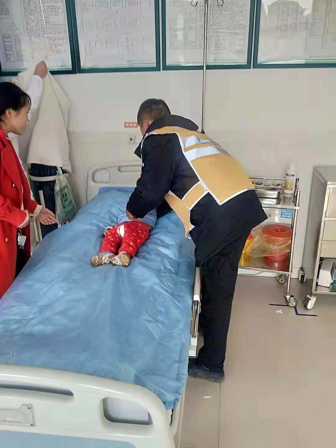 當日中午12:30左右,孫慧洋、王露偉兩名隊員開(kāi)車(chē)巡察期間,經(jīng)過(guò)藕花洲大街與星韻路路口時(shí),發(fā)現有一名紅衣女子,手中抱著(zhù)一名嬰兒,神色緊張不??奁?。駕駛員孫慧洋看情況不對,立即靠邊停車(chē),跑向女子詢(xún)問(wèn)情況。該女子告訴隊員,嬰兒神志不清,正準備打車(chē)去就醫,但一時(shí)叫不到車(chē),甚是著(zhù)急。女子懷中嬰兒還伴有口吐白沫現象。時(shí)間就是生命,隊員當機立斷,讓抱著(zhù)孩子的女子上車(chē)將其送到星橋衛生院急診。