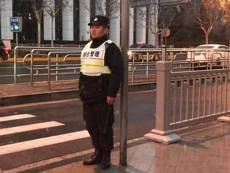 在跨年夜當天,隊員們不顧天氣嚴寒,依然堅守崗位,無(wú)私奉獻,即使是面對風(fēng)雪,依然對市民游客面帶微笑、熱情指路。用宗保公司誠摯的服務(wù)理念與熱情的服務(wù)水平來(lái)回報社會(huì ),以確保小陸家嘴區域在跨年夜中無(wú)安全事故,人民群眾能過(guò)一個(gè)安定祥和的元旦佳節。