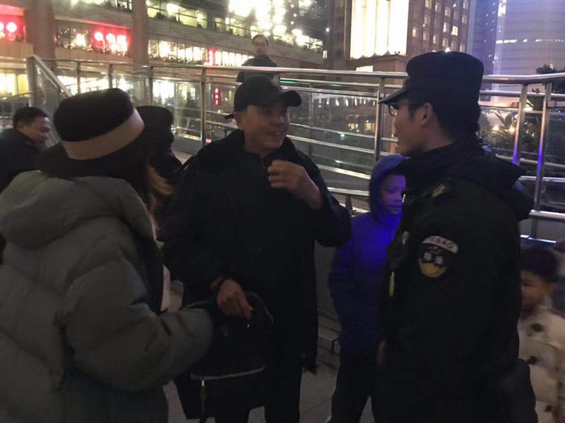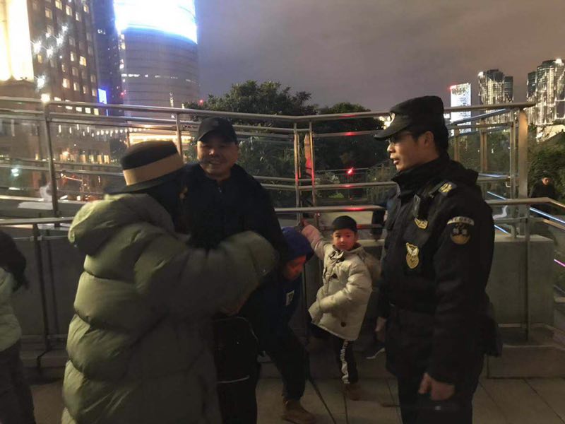 2018年12月31日晚20時(shí)25分,正在濱江區域安排大客流管控設卡工作的特保隊長(cháng)余澤權接到當天值班所長(cháng)夏志松的協(xié)查指令,說(shuō)濱江哈根達斯附近有增援民警求助,現場(chǎng)有游客家屬走丟,要求我們趕到現場(chǎng)處置。接到這一指令后,余澤權帶領(lǐng)濱江段執勤班長(cháng)王曉盼與隊員張雅坤趕赴現場(chǎng),找到當事人后通過(guò)了解,當事人一家在濱江親水平臺處與其父親走散,電話(huà)聯(lián)系不通,而且都是第一次來(lái)到小陸家嘴區域游玩,對地方不熟悉。