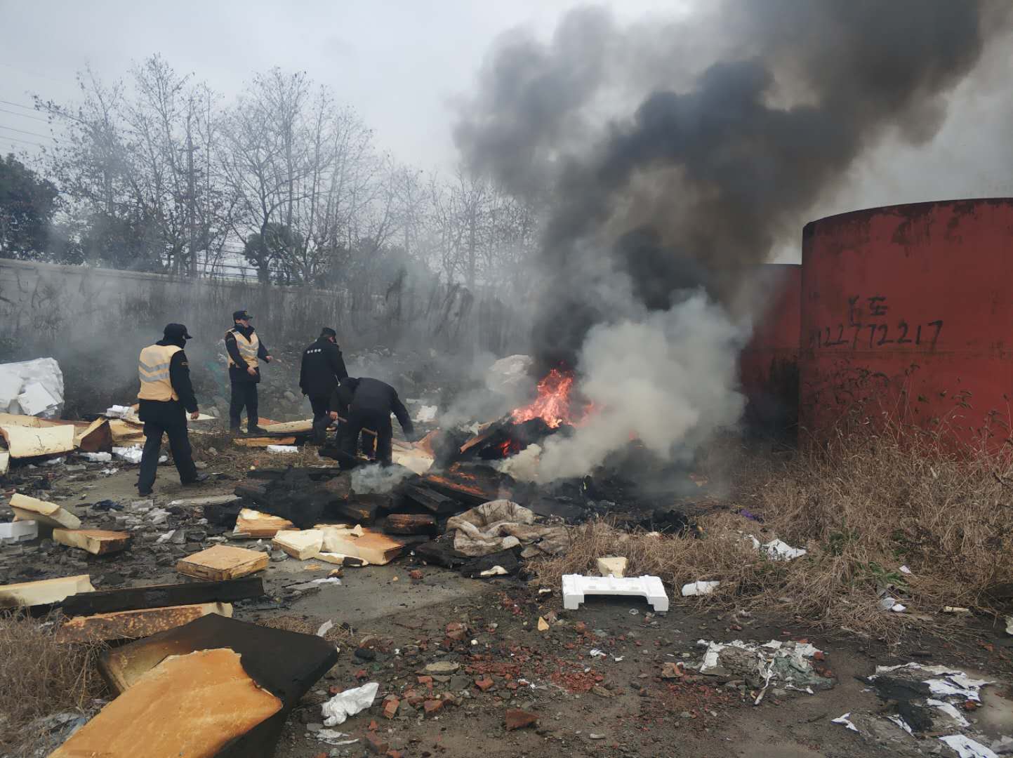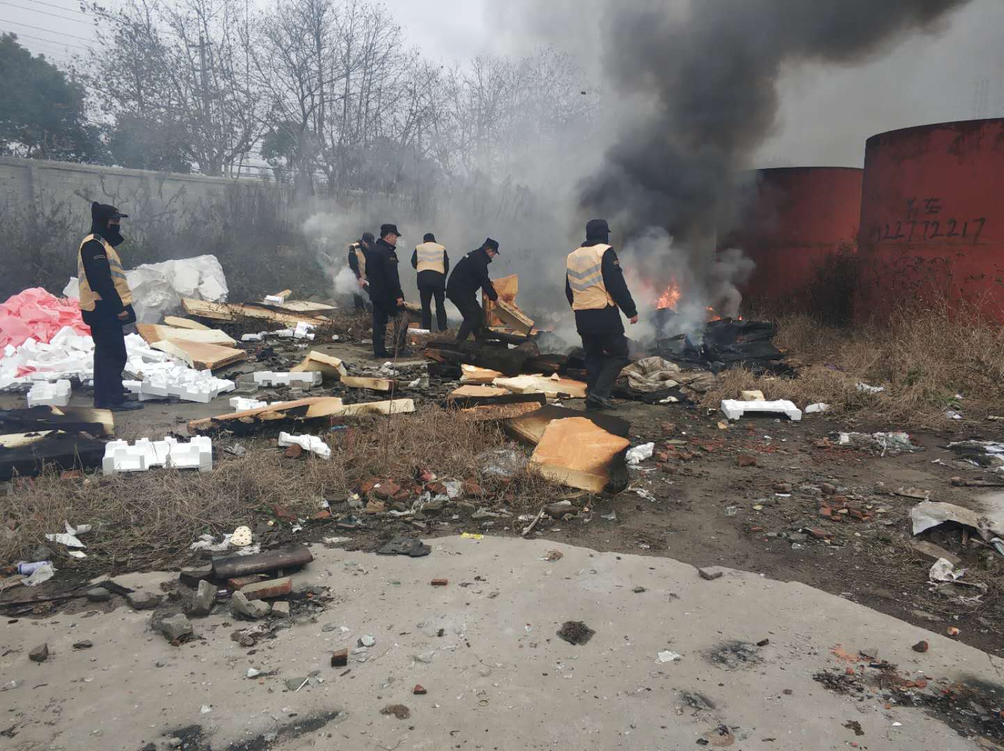 2018年12月31日14:16,宗保隊員駐金橋市容隊員胡成林、張?chǎng)卧谘膊橹撂坡仿吩S加溝橋西側,發(fā)現圍墻內有濃煙。細心查看,發(fā)現圍墻內堆放的廢舊泡沫在燃燒。若不及時(shí)處理,火情將持續蔓延,危及周邊群眾安全,造成空氣污染。面對這種情況,隊員立即上報區域負責人,同時(shí)撥打了119火警電話(huà)。負責人第一時(shí)間趕至現場(chǎng),指揮隊員搬移泡沫,控制火情蔓延,并安排隊員進(jìn)行安全警戒,疏導勸離圍觀(guān)群眾。消防人員于14:27到達現場(chǎng)進(jìn)行滅火,14:43火情徹底被熄滅,未造成人員和財產(chǎn)損失。