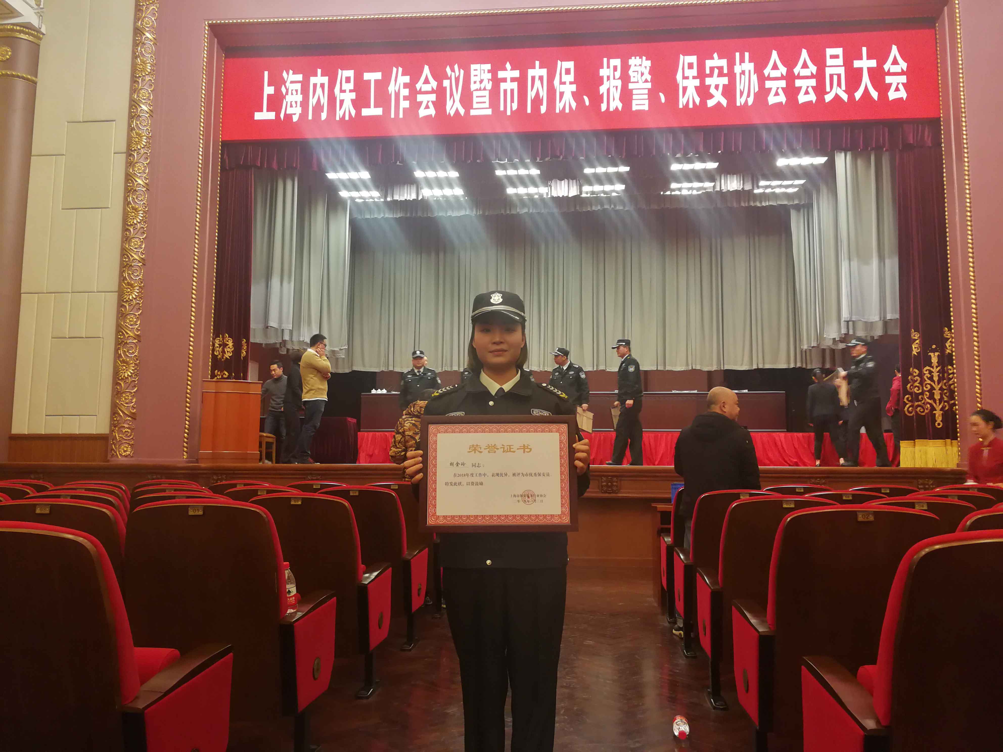 2019年1月3日下午,上海內保工作會(huì )議暨市內保、報警、保安協(xié)會(huì )會(huì )員大會(huì )在上海展覽中心舉行。會(huì )上,我司祝橋江鎮市容項目負責人胡金玲被評為“2018年度上海市保安系統十佳保安員”的榮譽(yù)稱(chēng)號。